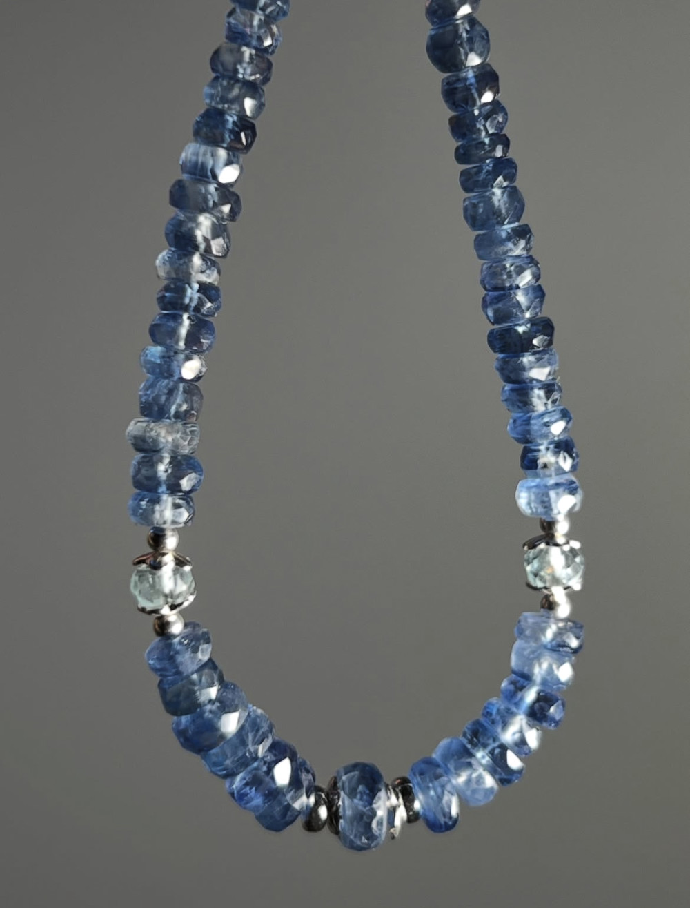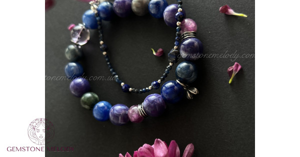 Браслет з зеленого турмаліну, верделіту; вставки аквамарина та аметиста