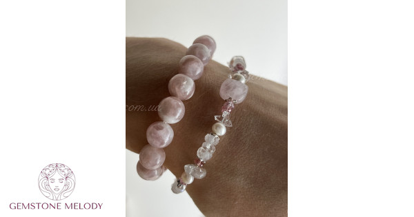 Браслети з фантомного кварцу і родохрозиту