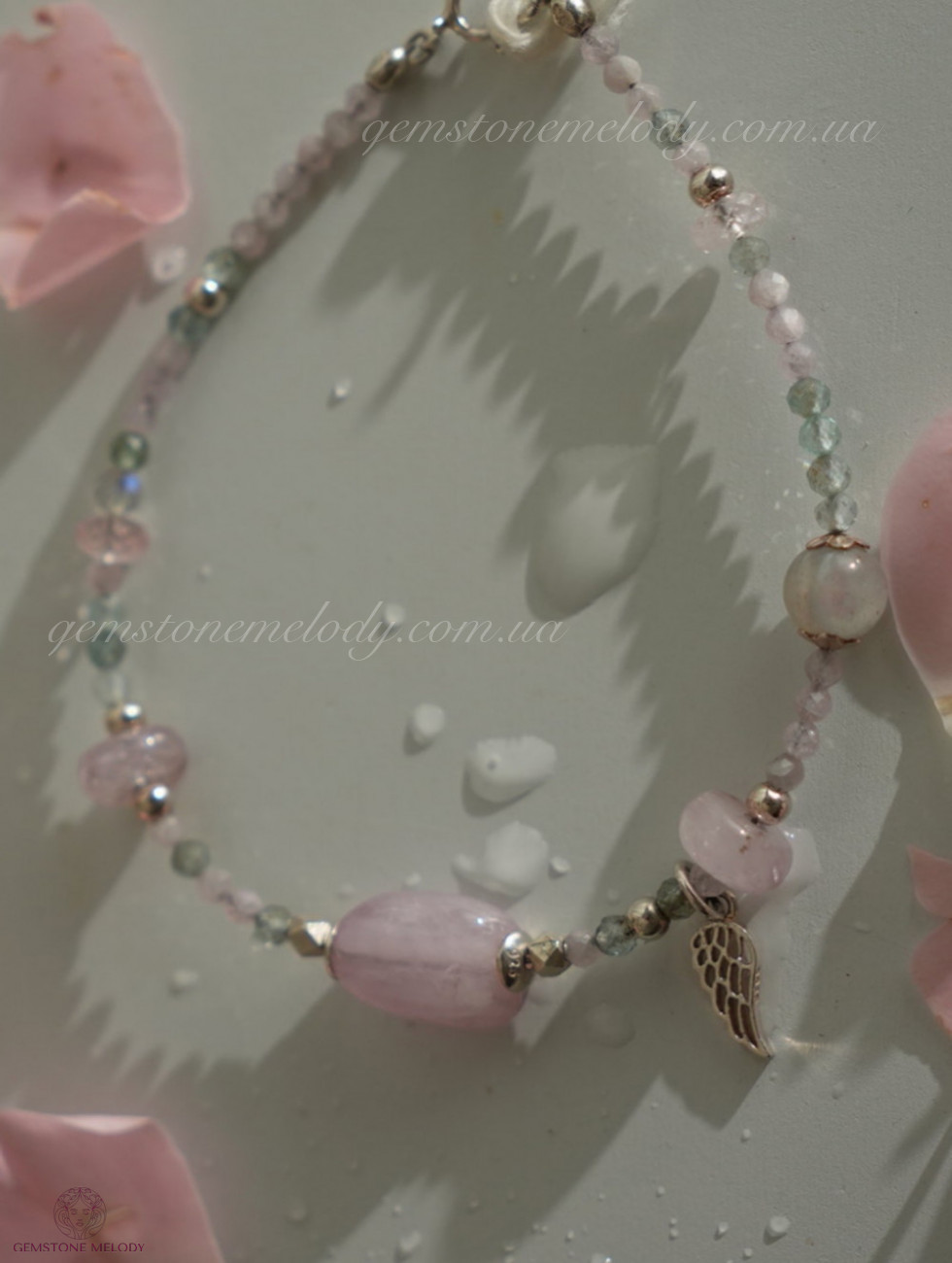 Браслет з кунциту і інших мінералів