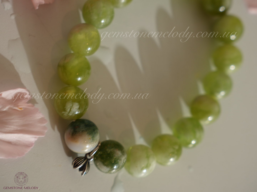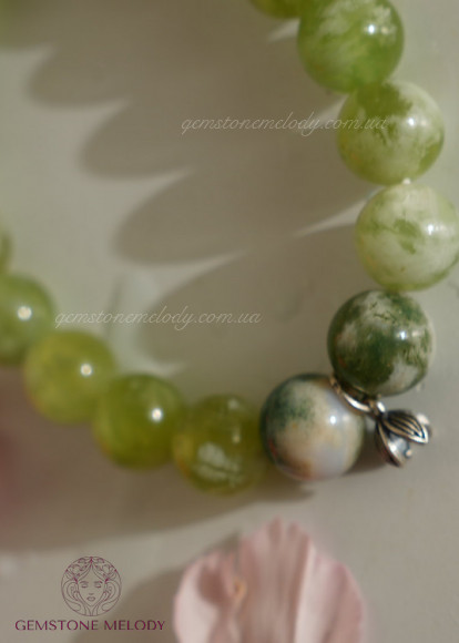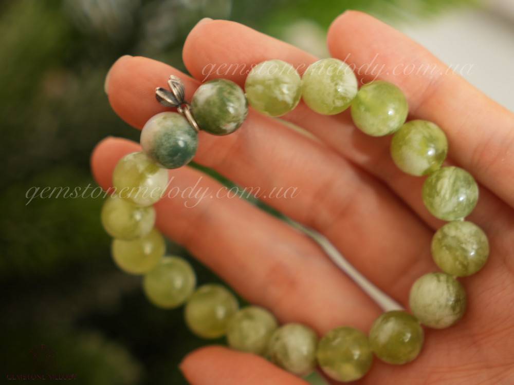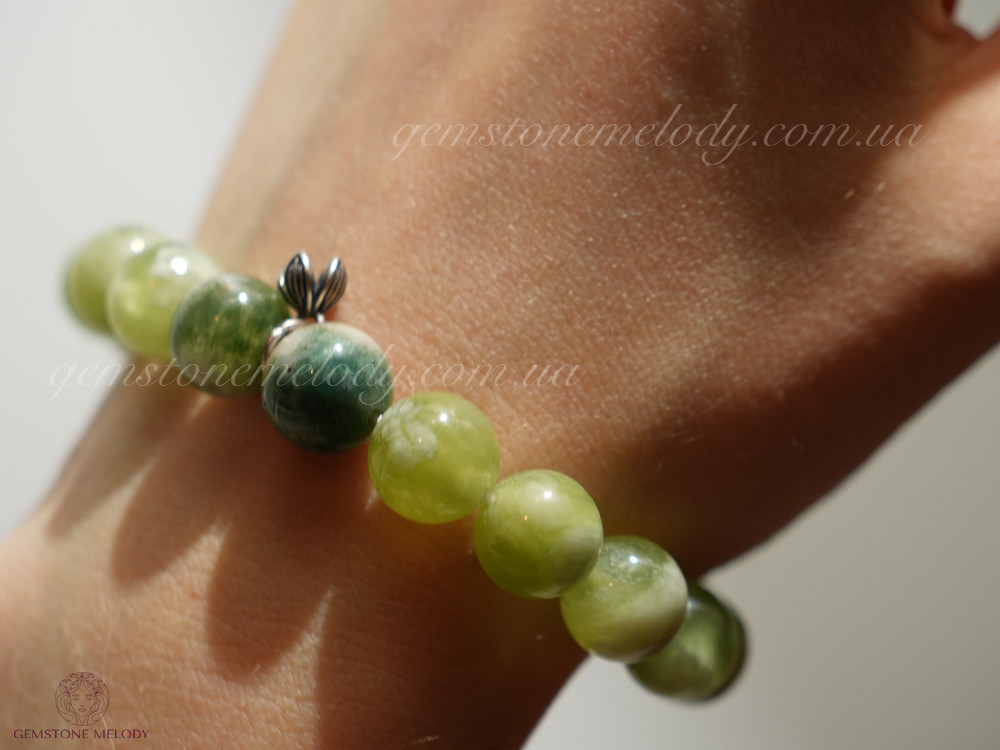 •серпентин(змійовик) високої якості та вставки мохового агату посередині 2намистини 10мм;