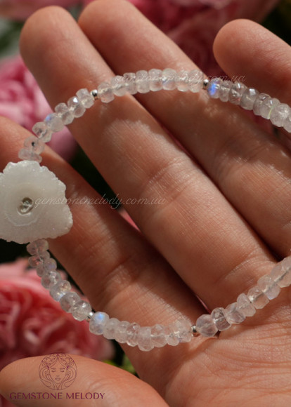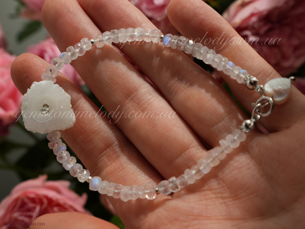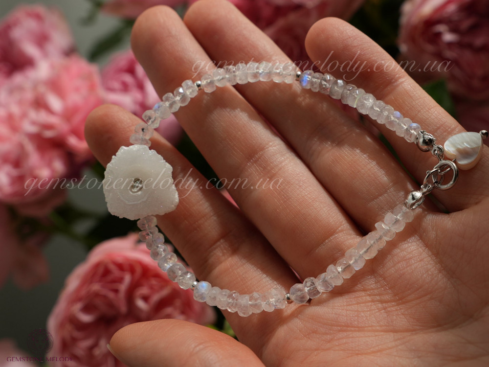 Браслет з жеодом кварцу та місячного каменя