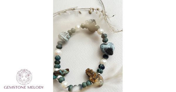 Браслет з блакитних мінералів, на замочку з подовжувачем