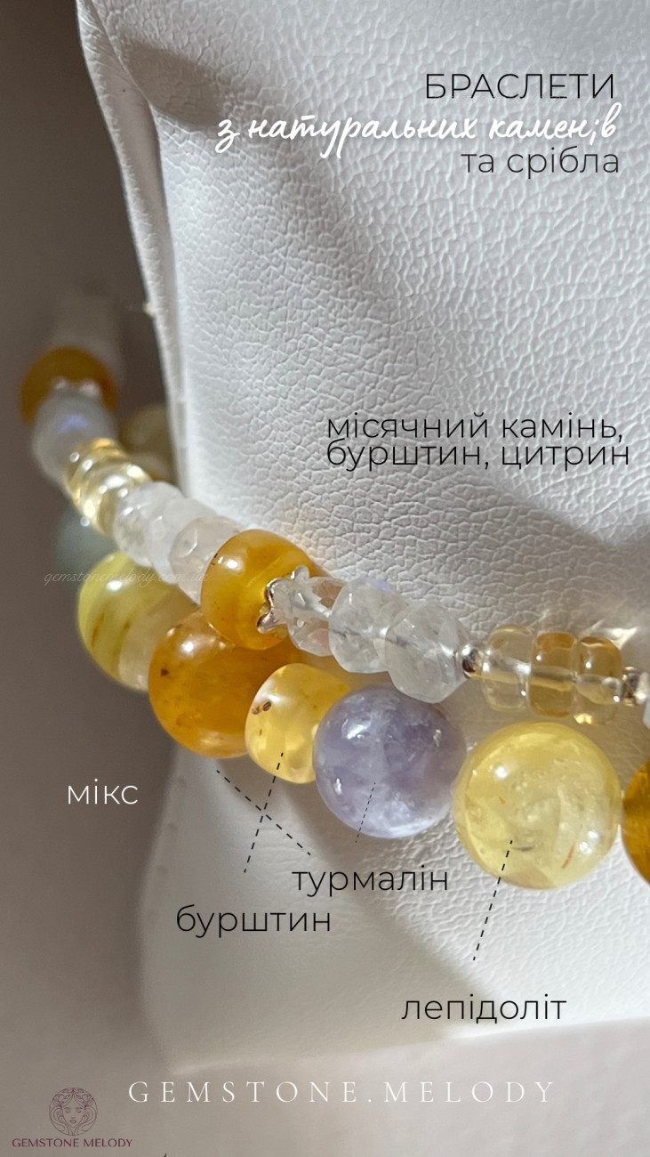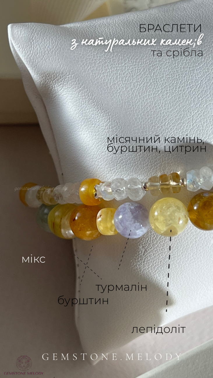 Камені, які використовуються | Яшма, лепідоліт, бурштин, турмалін, місячний камінь |