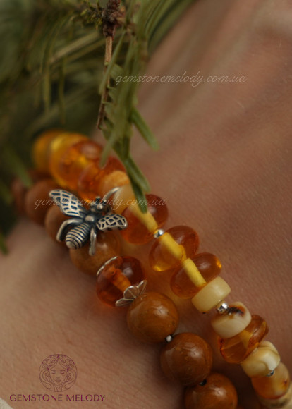 Набір браслетів з натуральною их каменів. Бурштин , яшма