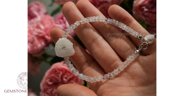 Браслет з жеодом кварцу та місячного каменя