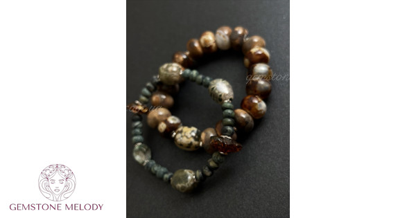Набір з двох браслетів, танзаніт, рубіни, бурштин