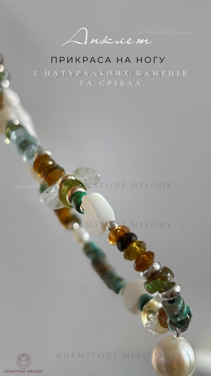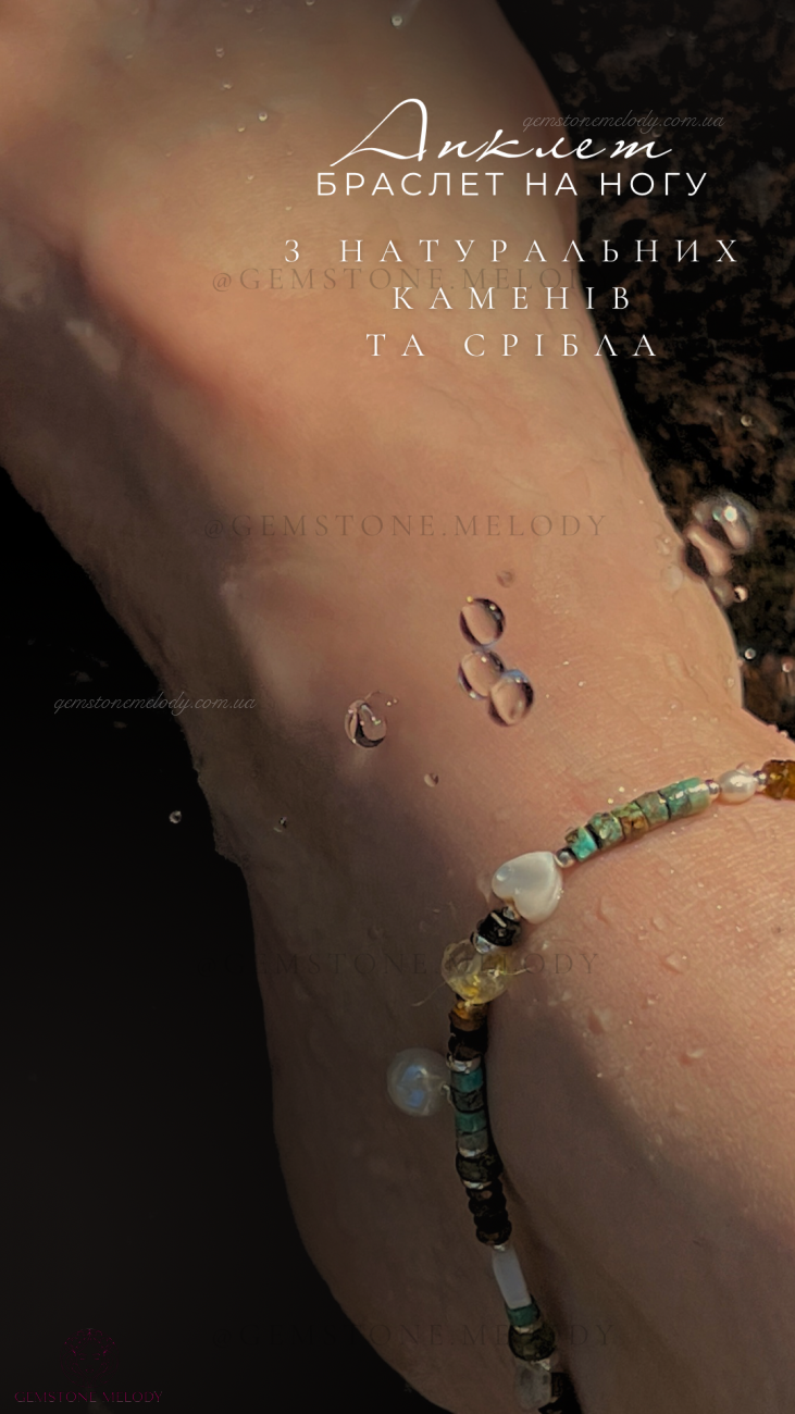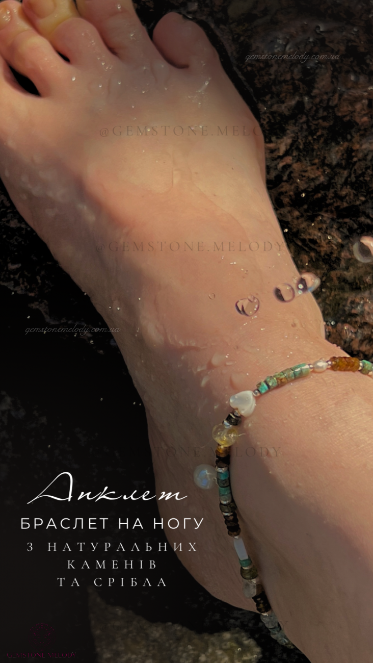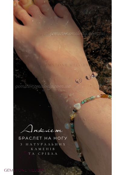 Браслет на нашу, анклет з натуральних каменів та срібла