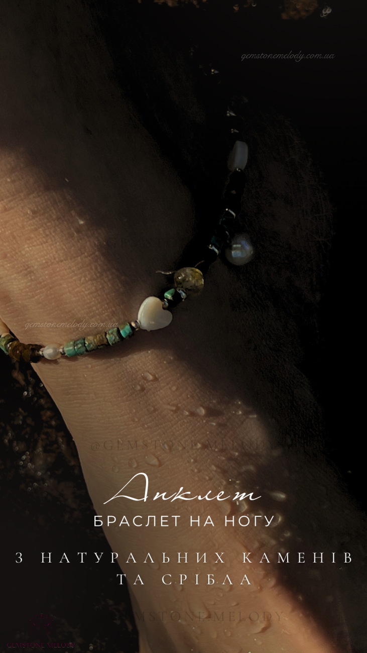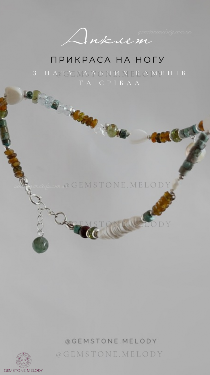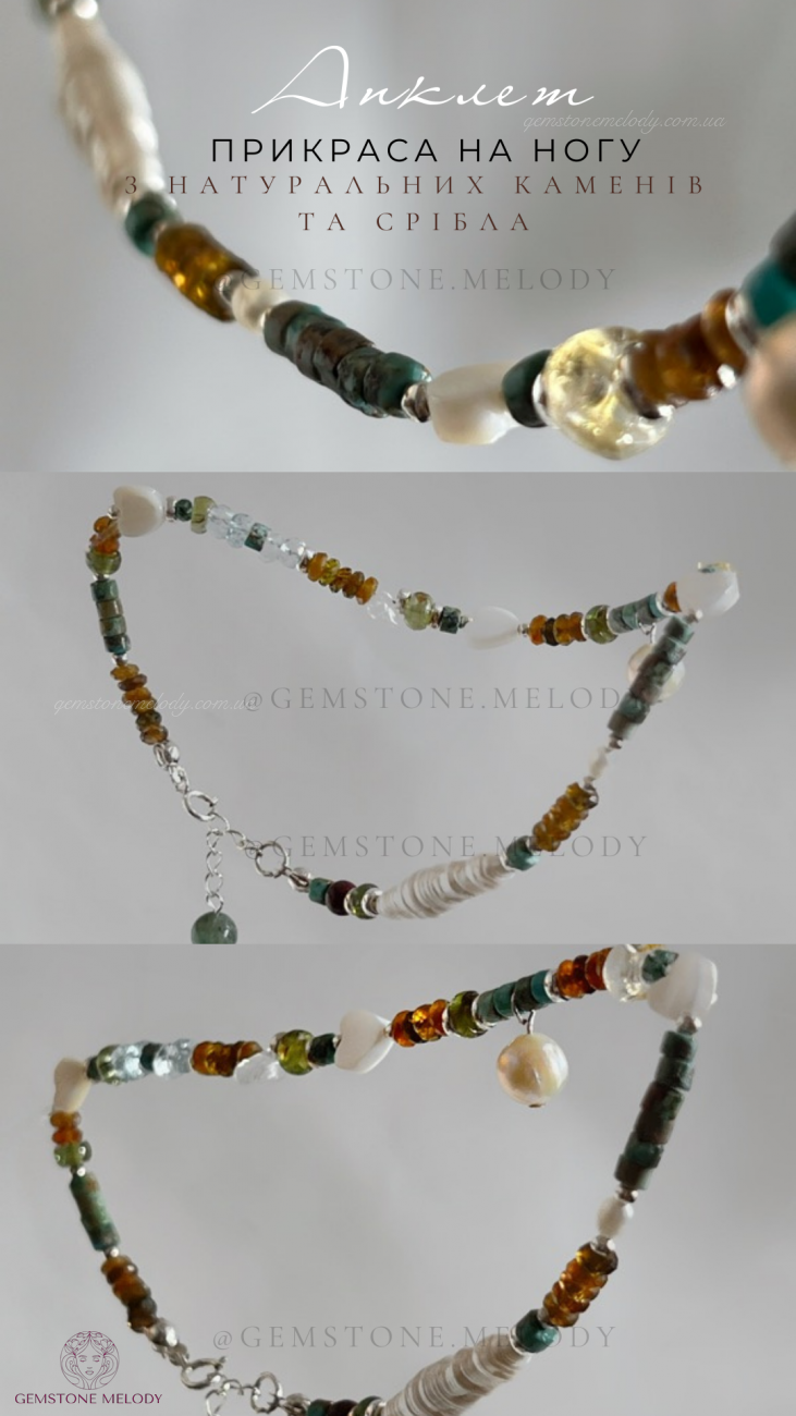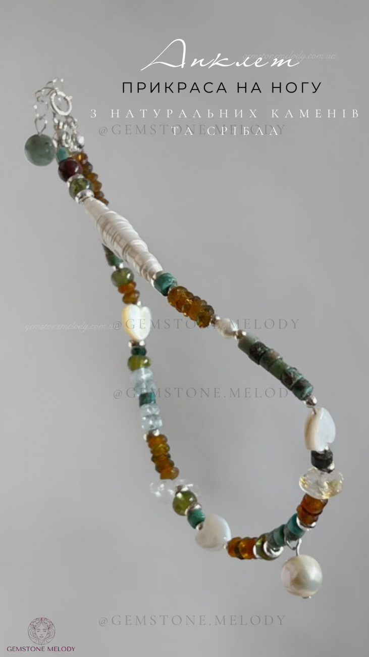 Браслет на нашу, анклет з натуральних каменів та срібла