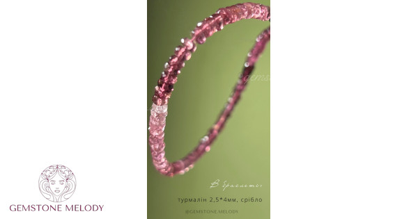 Браслет з рожевим турмаліном ( рубелітом) і сріблом