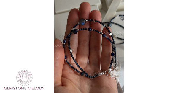 Браслет з кіанітом , з лабрадором, лазуритом