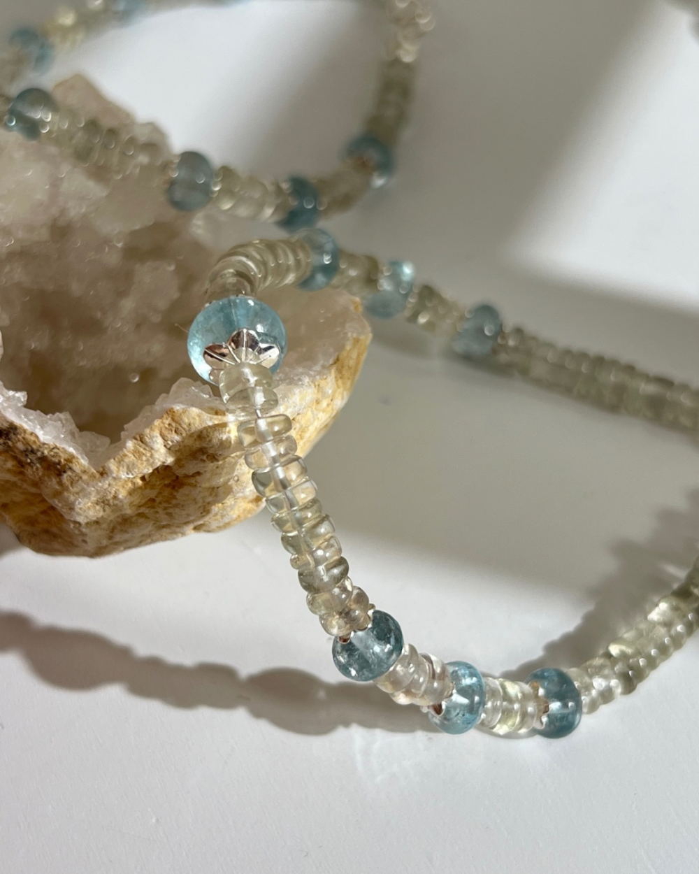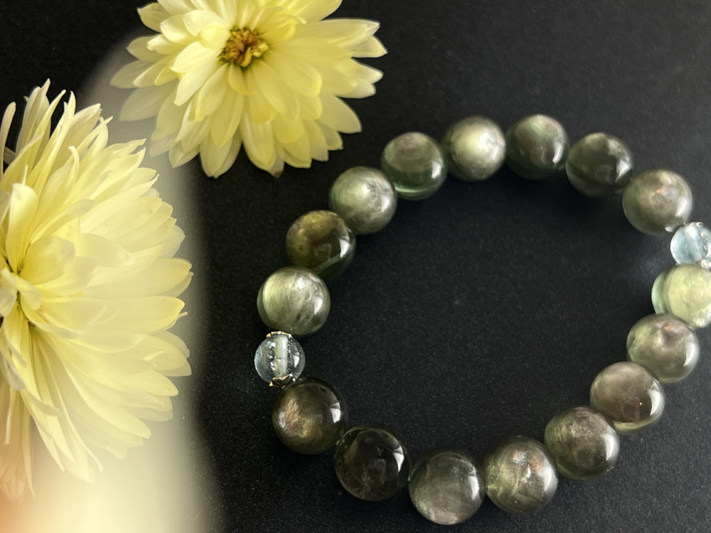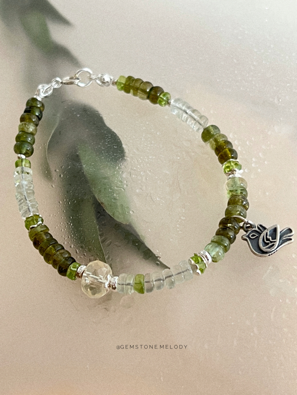 Браслет з зеленого кварцу та аквамарину