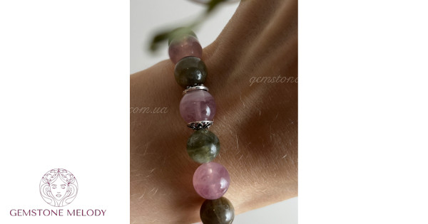 Браслет з різнокольорового турмаліна з іншою на вибір підвіскою
