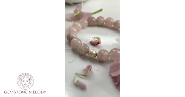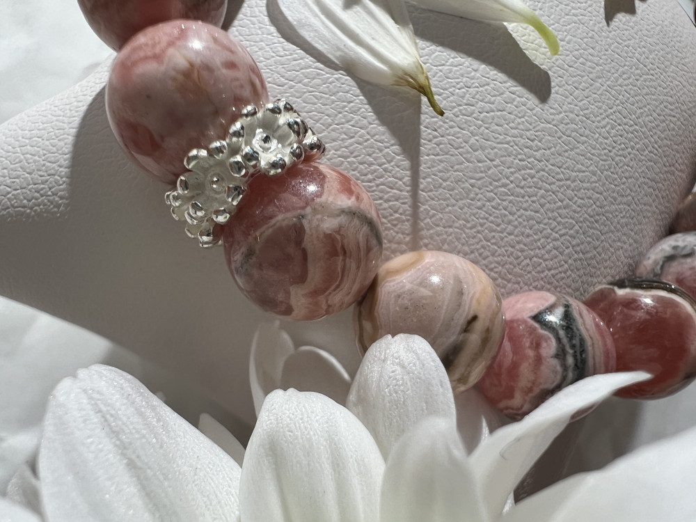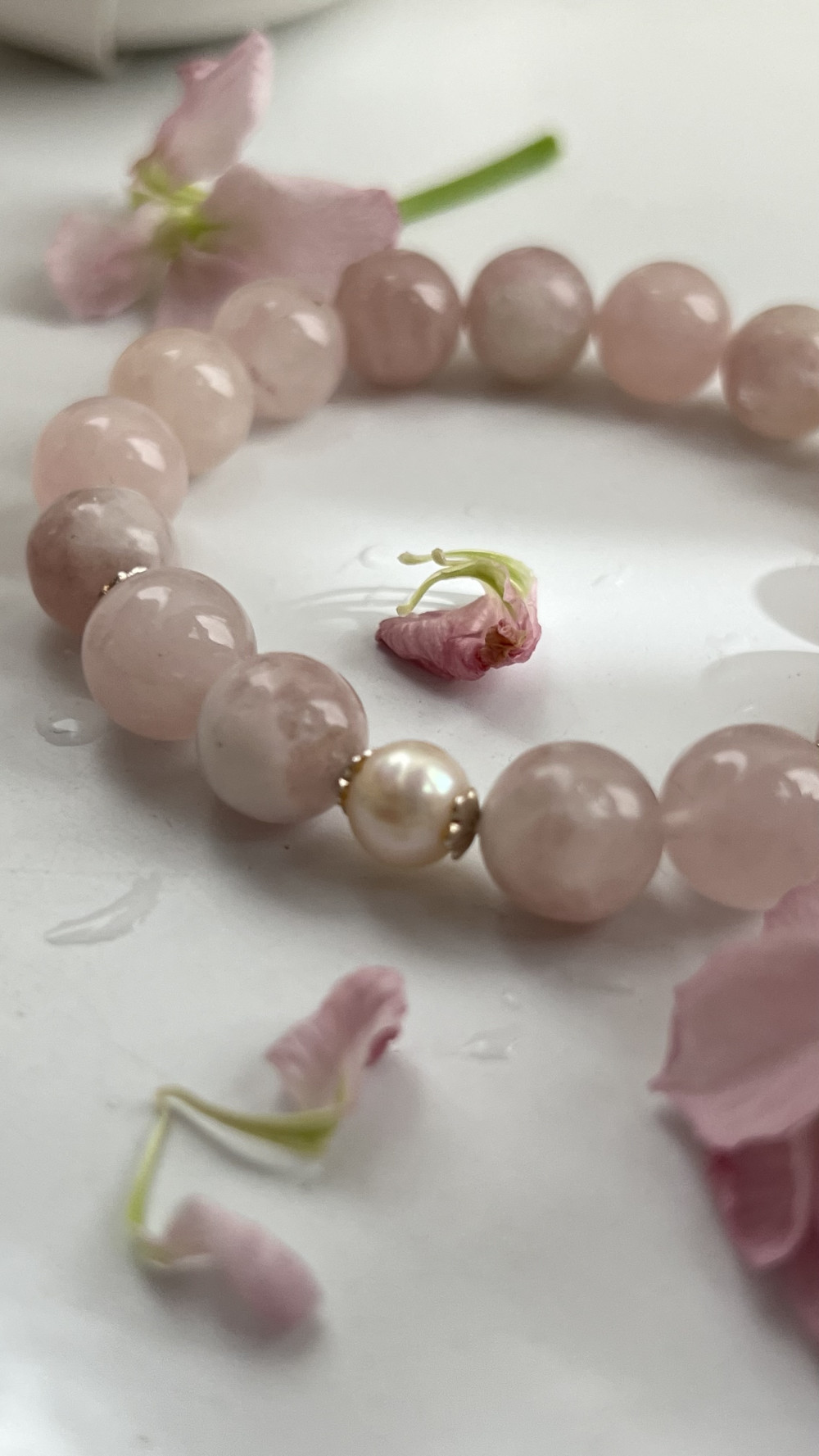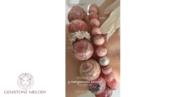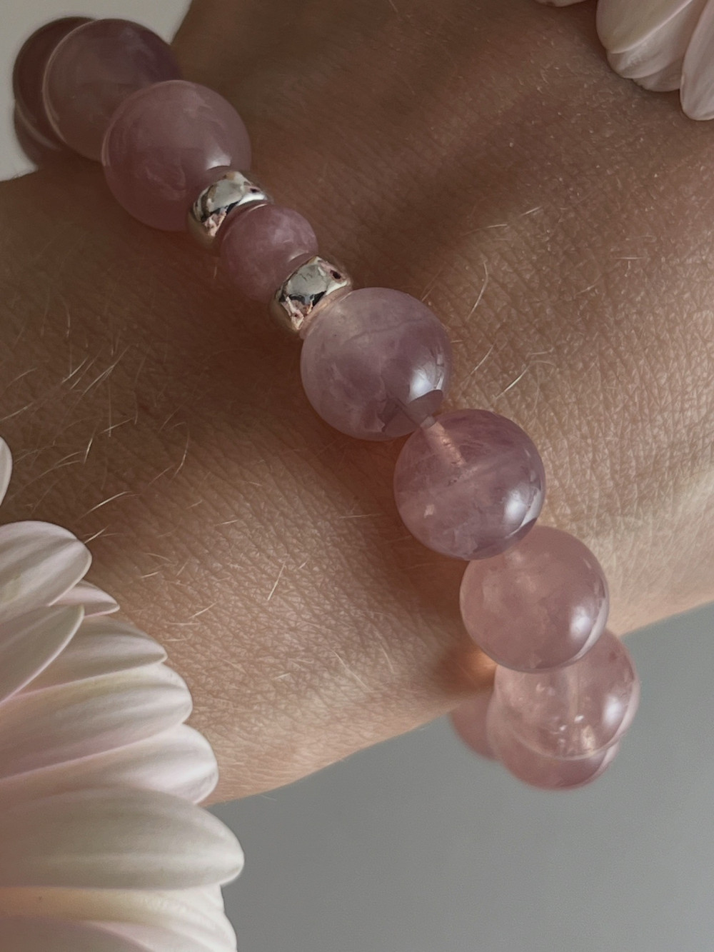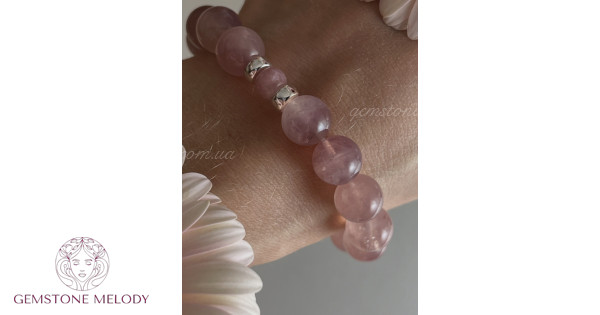 Браслет з рожевих мінералів, лепідоліту, рожевого кварцу