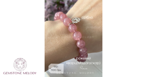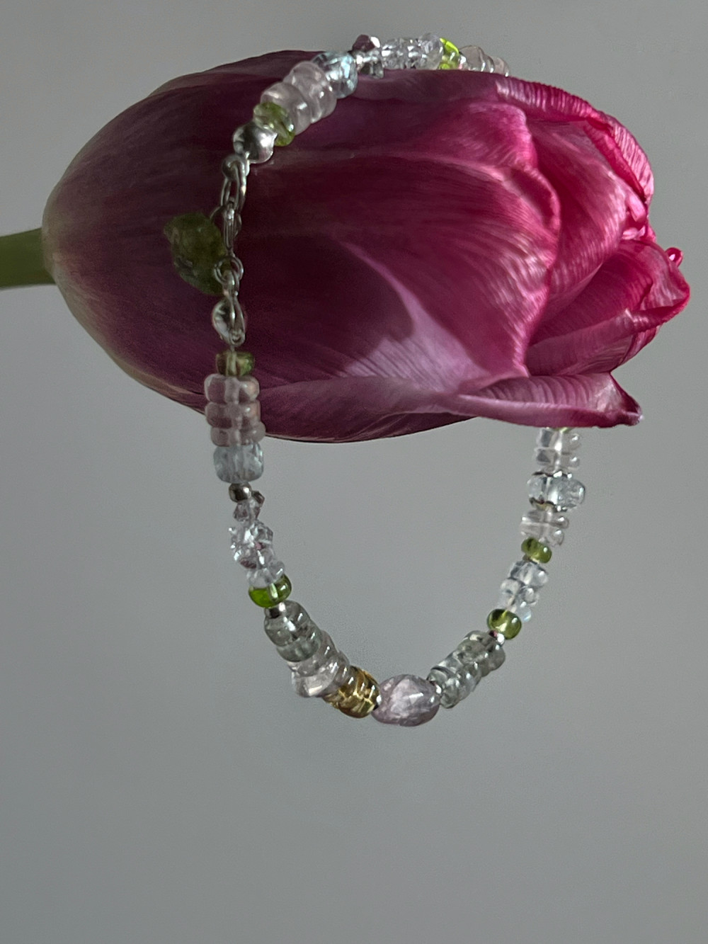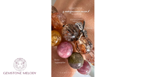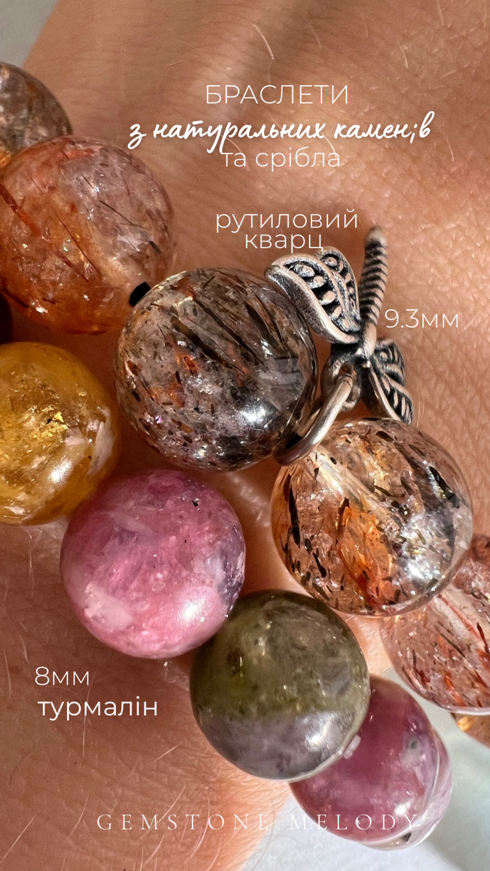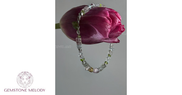 Браслет з рожевого, зеленого, жовтого кварцу та іншими мінералами