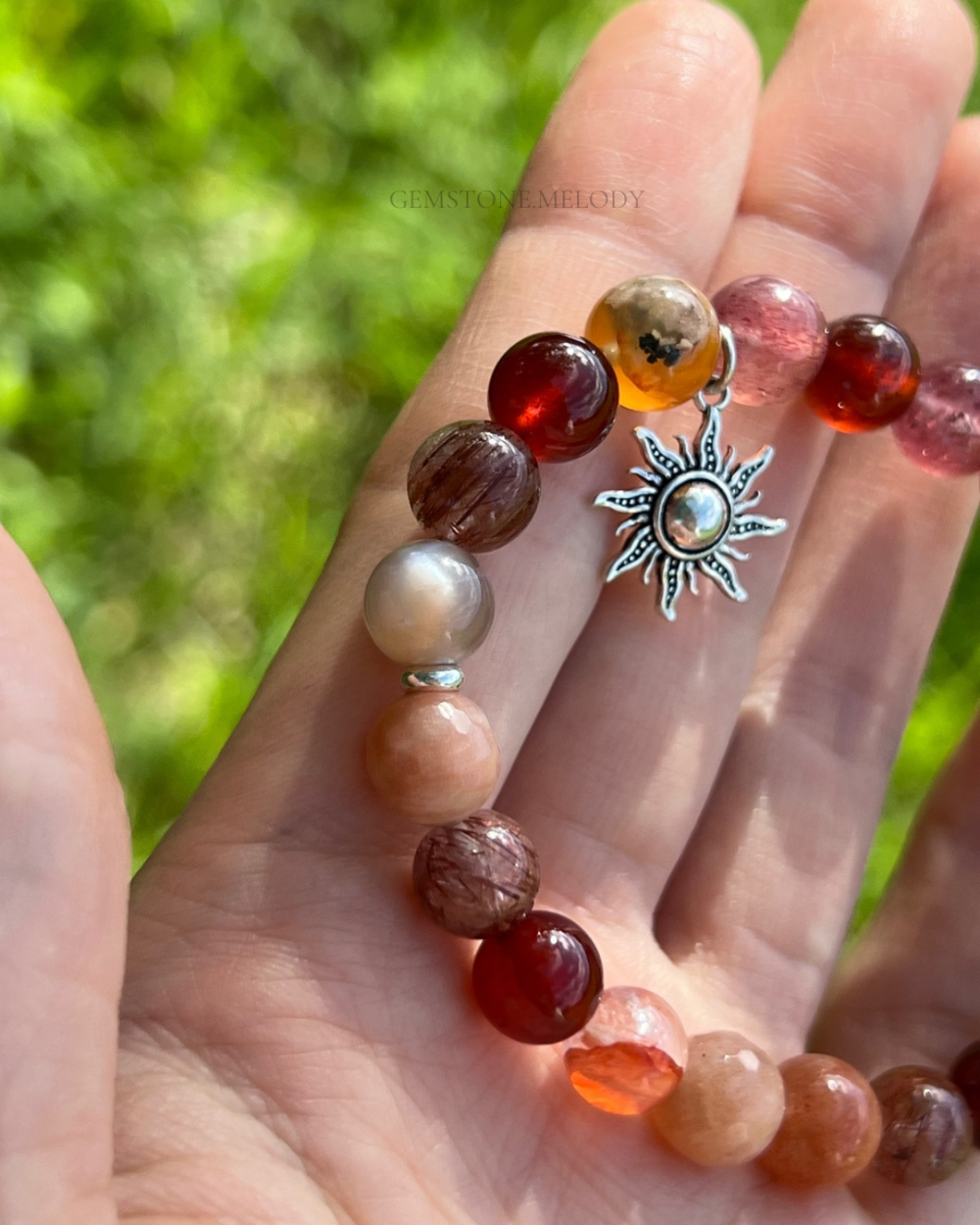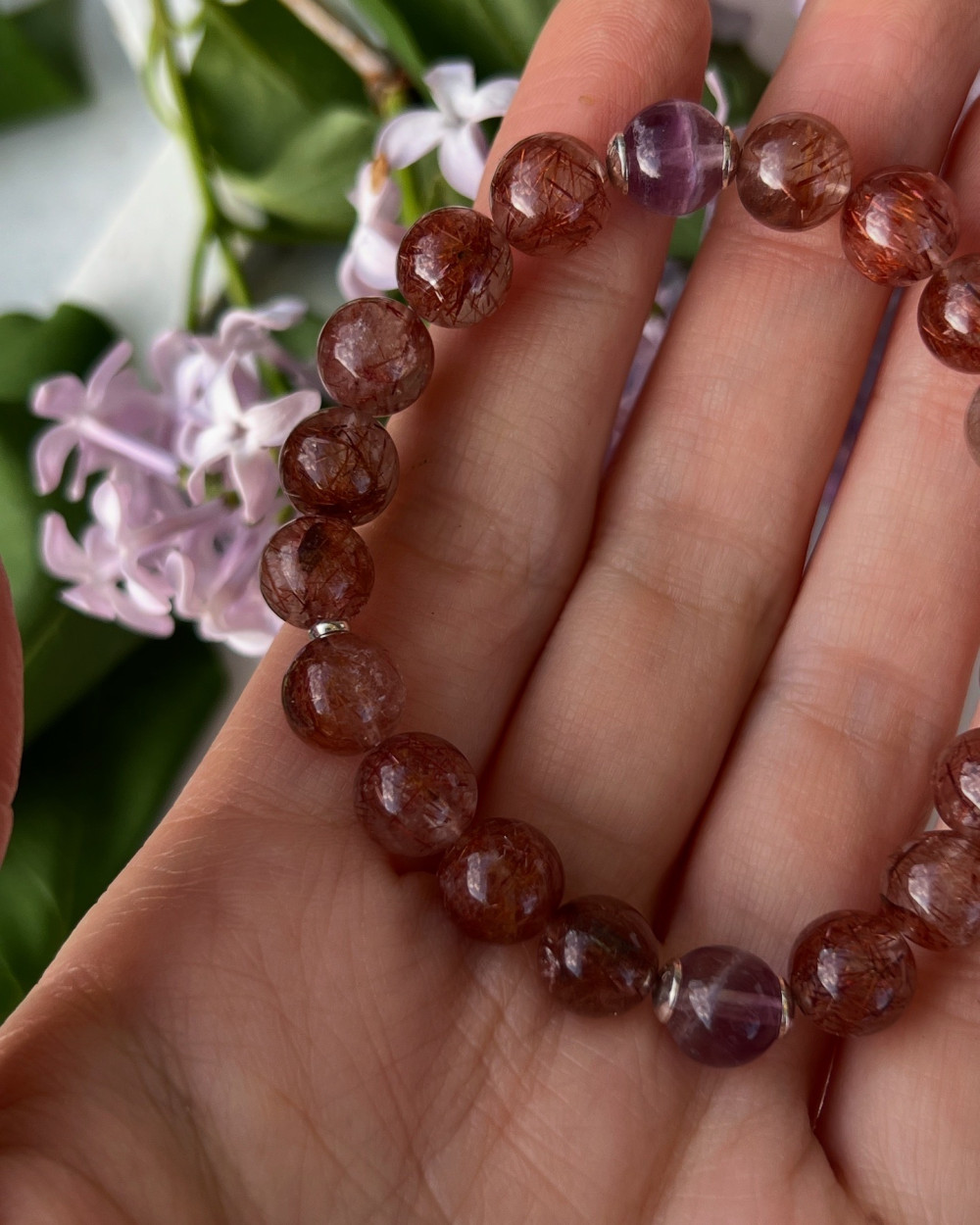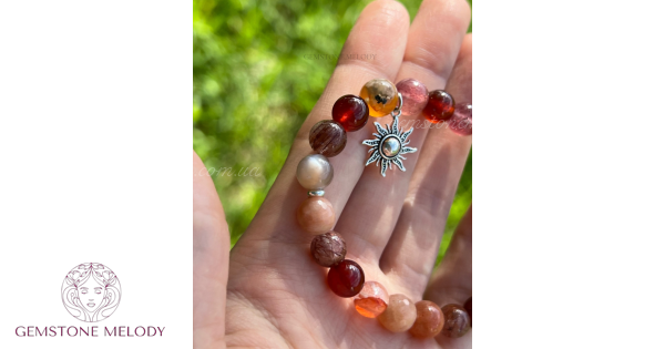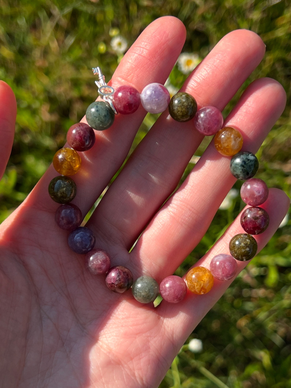 Браслет з рожевого, зеленого, жовтого кварцу та іншими мінералами