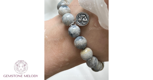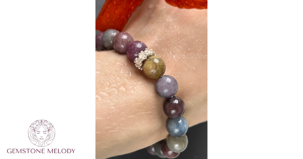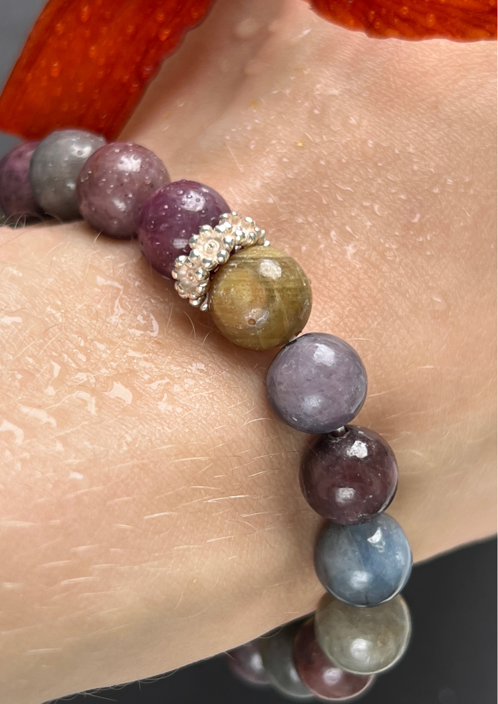 Браслет з рожевим кварцем та лепідолітом і з сапфіром