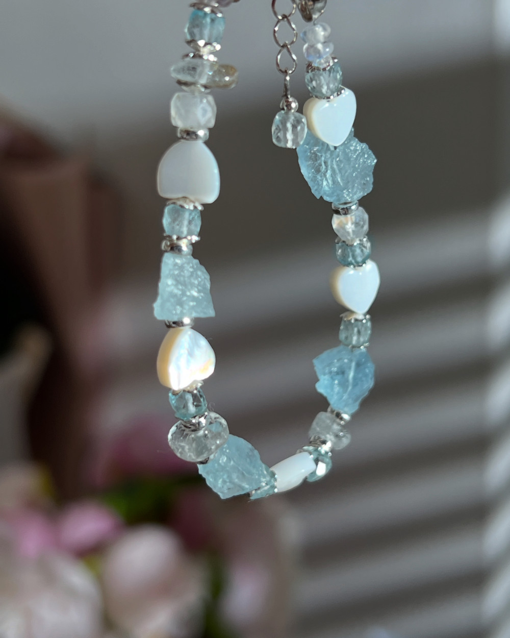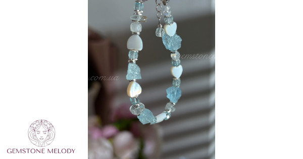 Браслет з аквамарином, перламутровим серцем