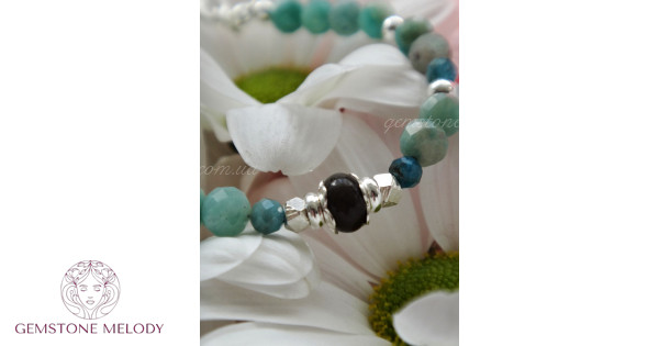 Браслет З амазоніта, апатита и агата