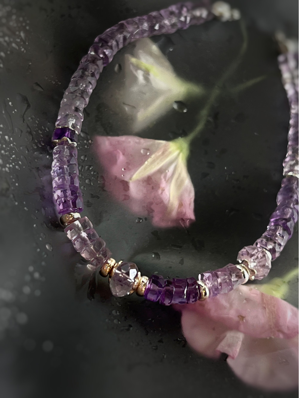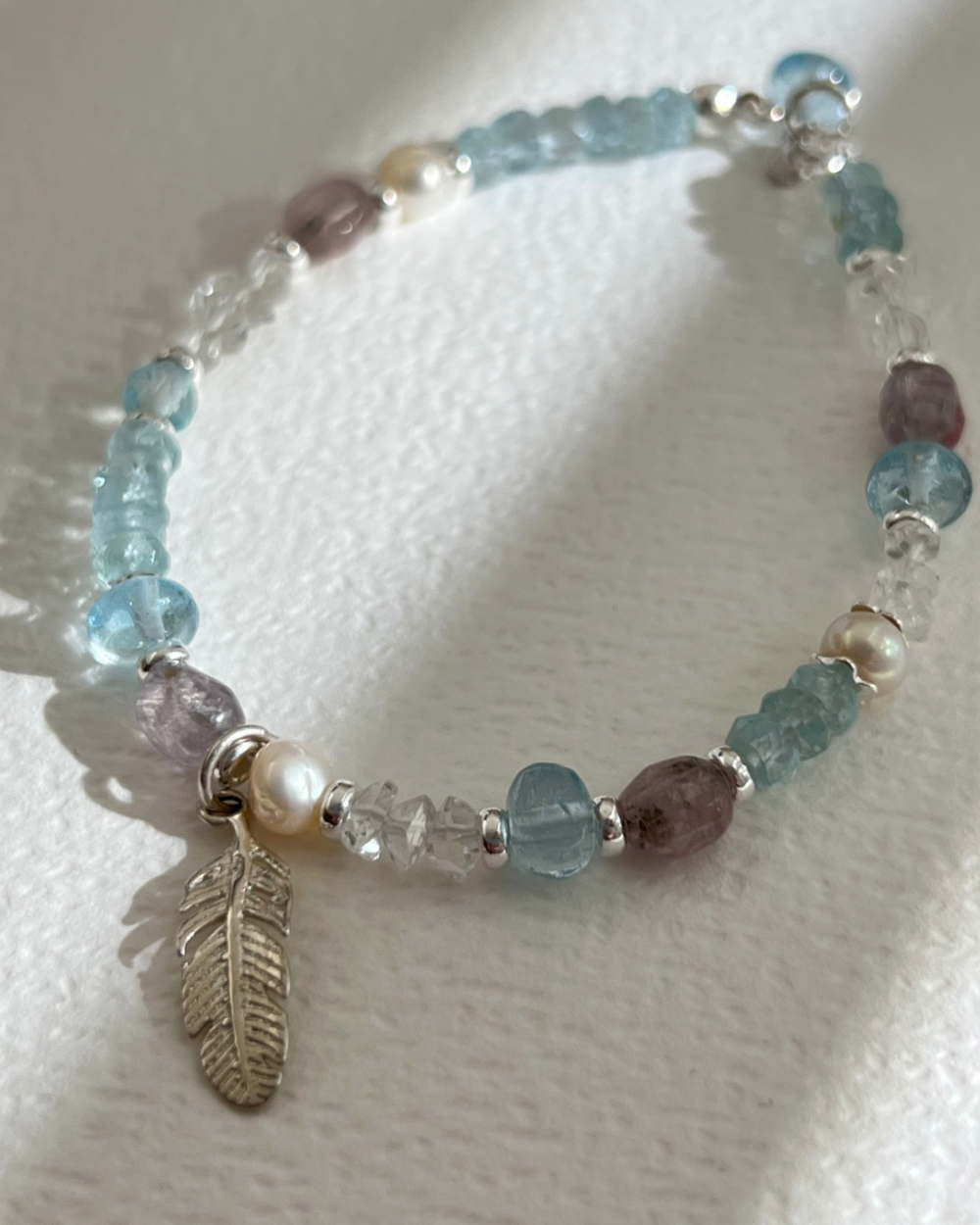 Браслет з аквамарином і аметистом