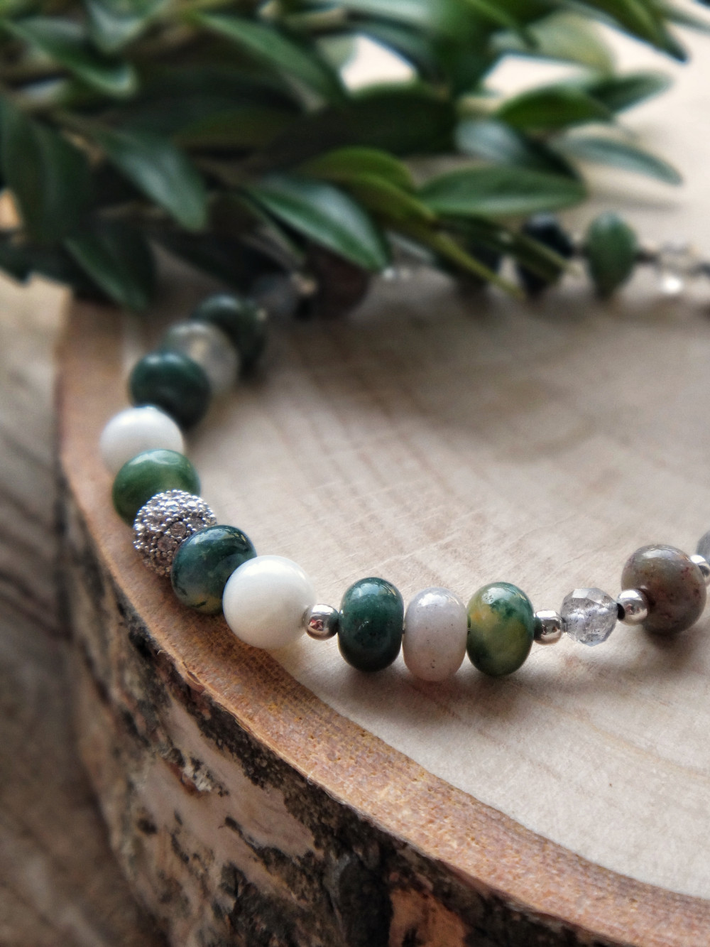 Браслет з агата, перламутра