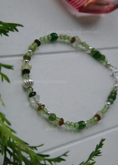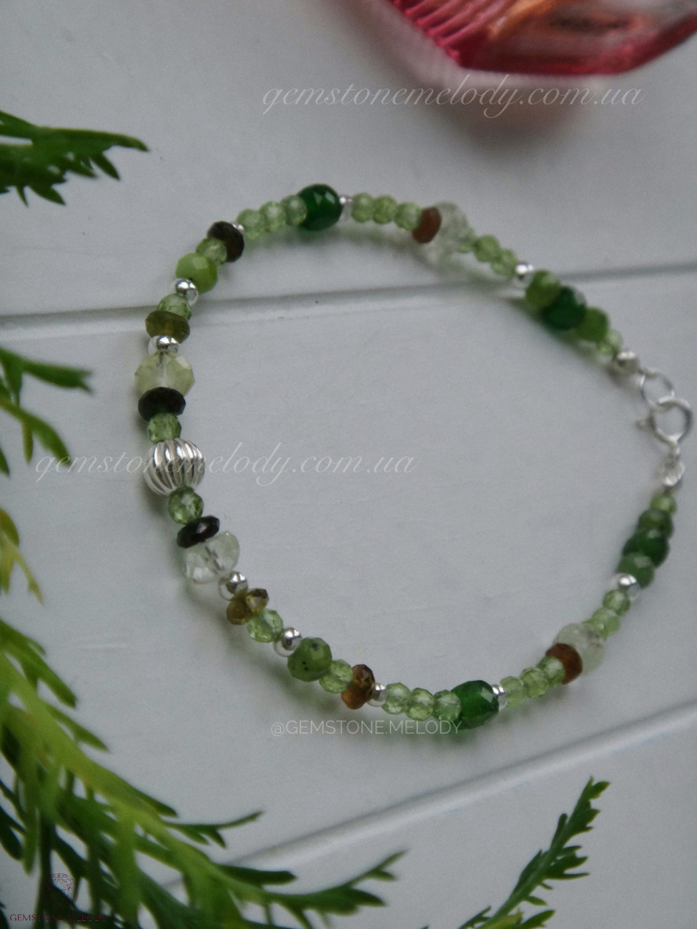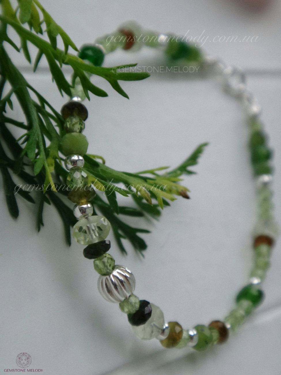 Браслет из хризолита, турмалина, гелиодора, нефрита