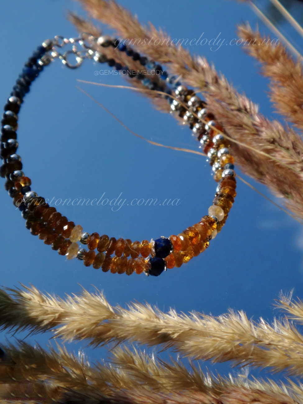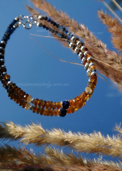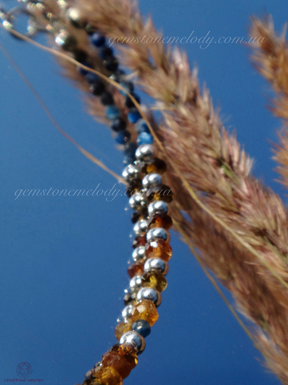 турмалін 4×2мм, лазурит 4мм, лазурит 1,5мм, срібло 925проби
