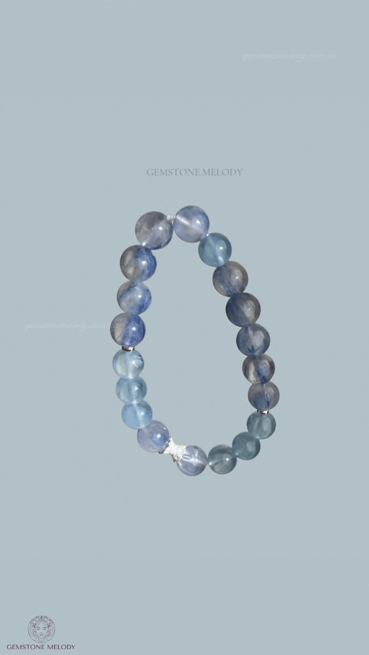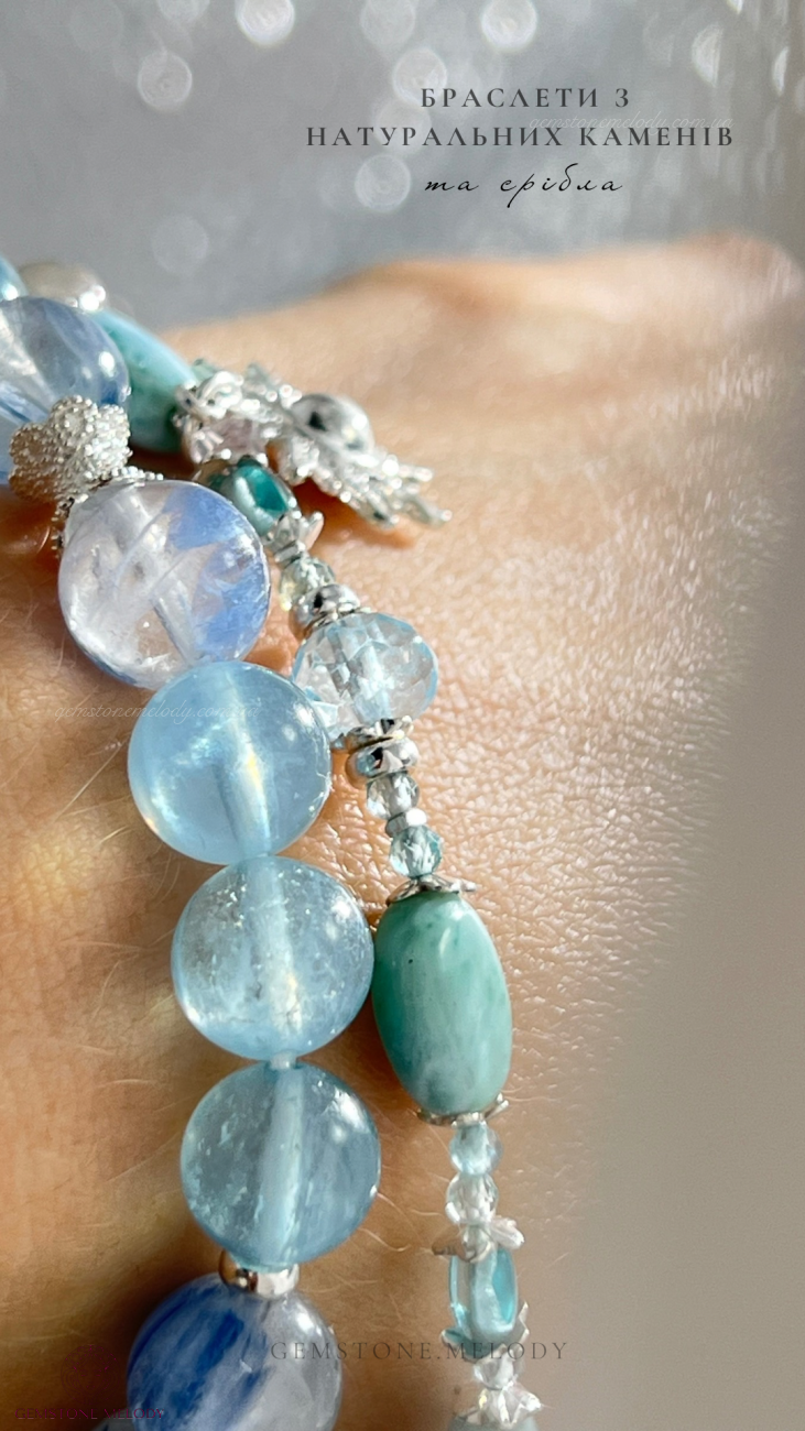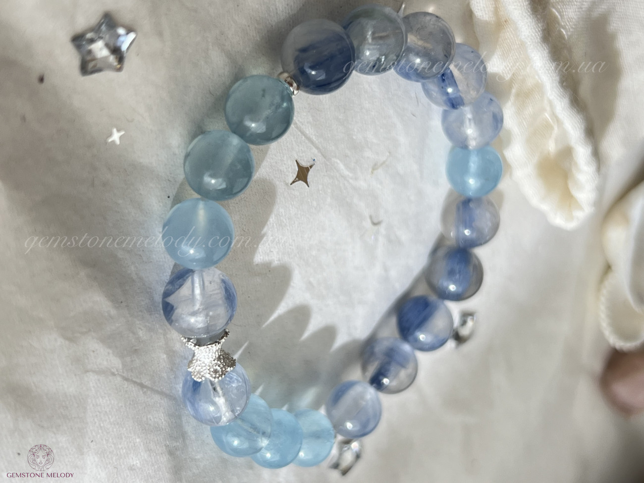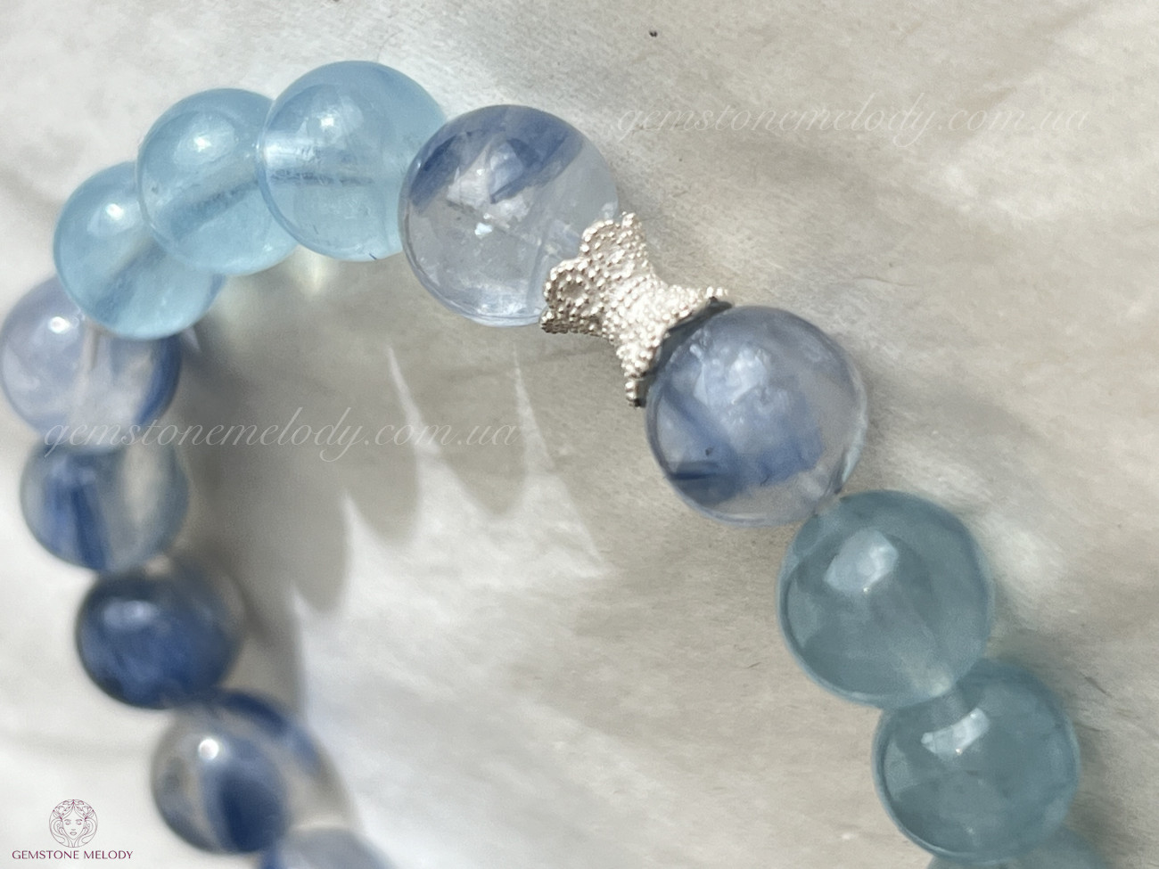 •аквамарин 9,5мм, ексклюзивний кіаніт 9,5мм, срібло 925 проби; на резинці; 1410 грн