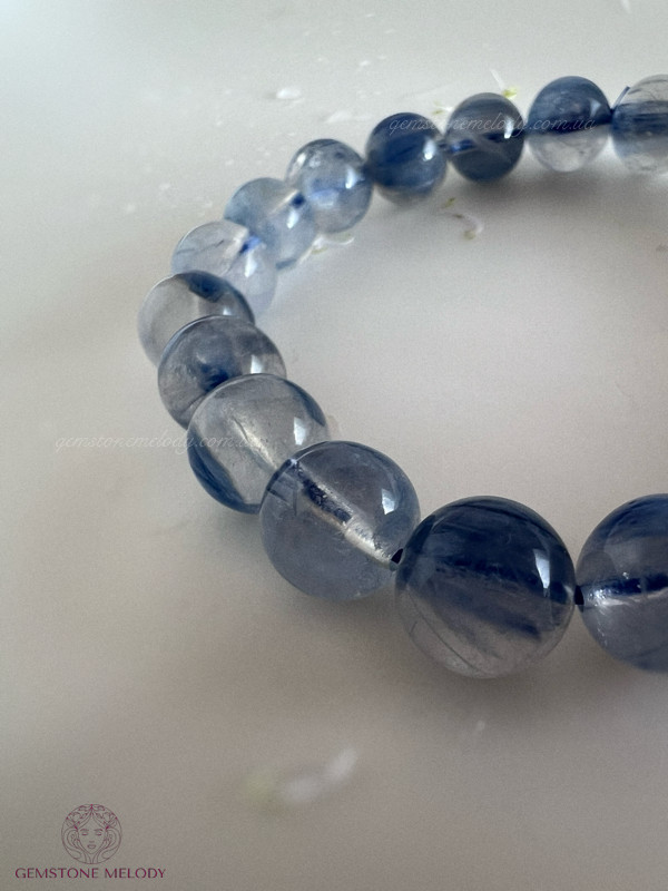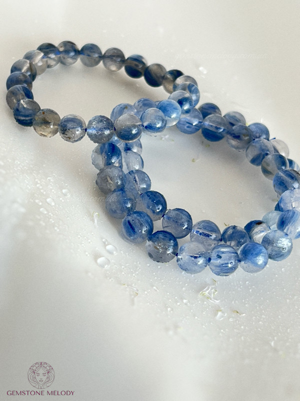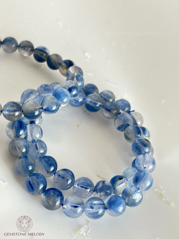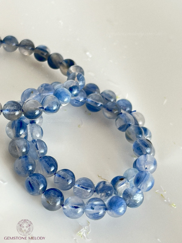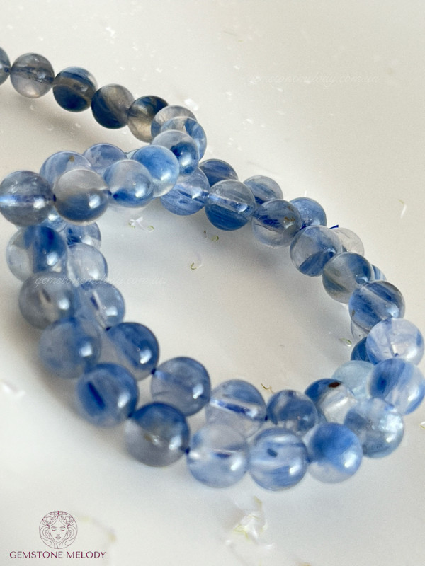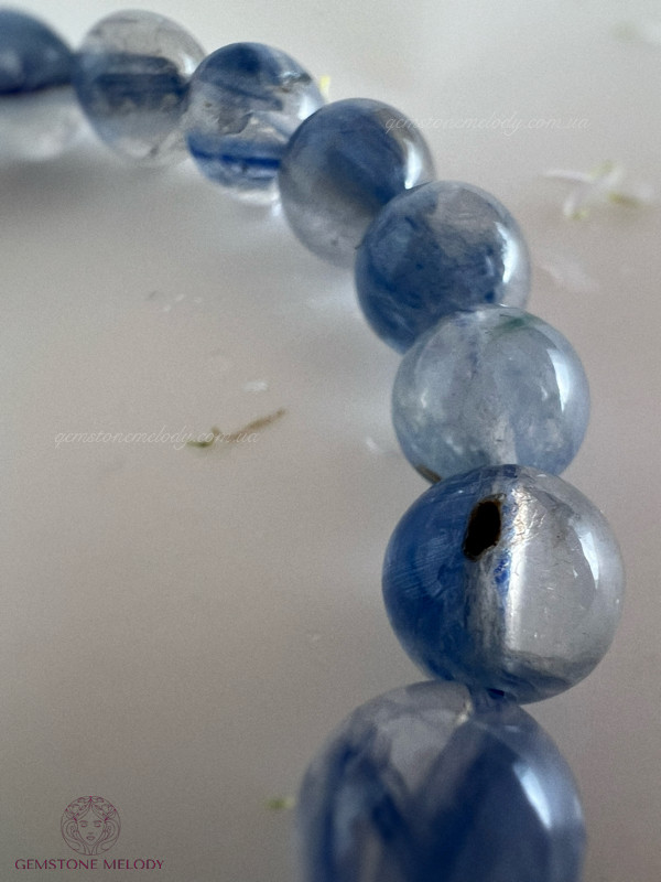 В браслеті: натуральний камінь кіаніт високої якості 9-9,5мм, на резинці