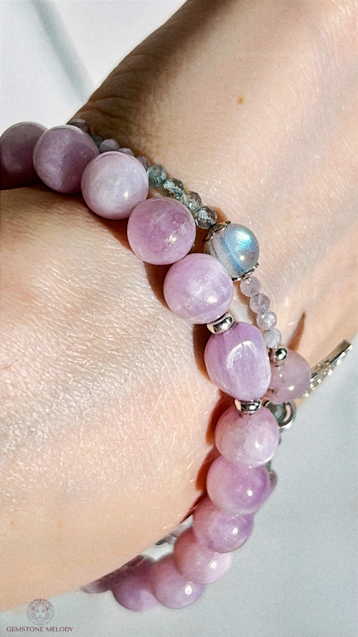 Браслет з кунциту, апатита, лабрадора