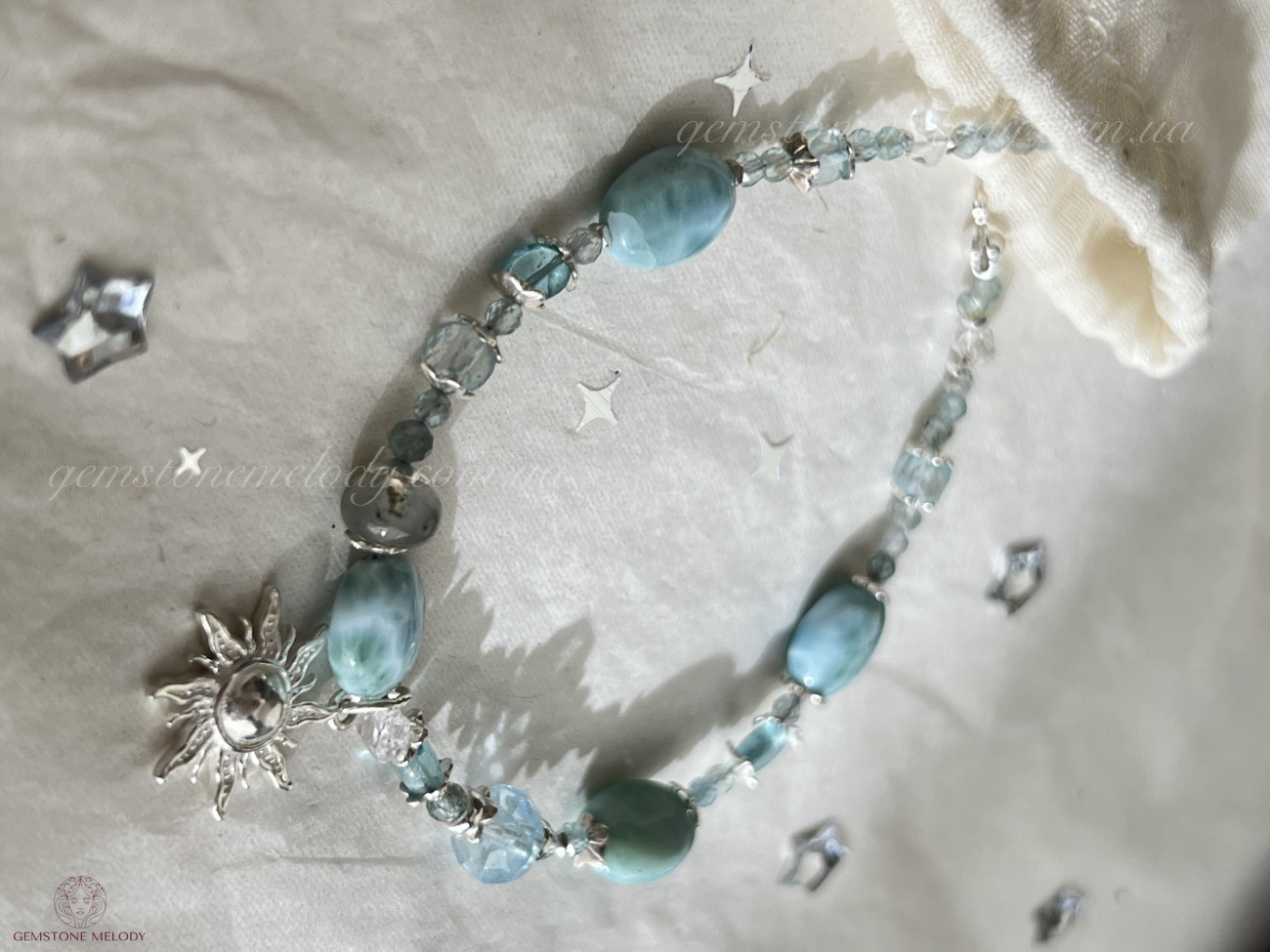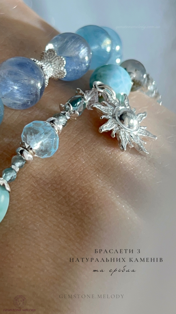 Браслет з ларимаром, апатитом, топазом