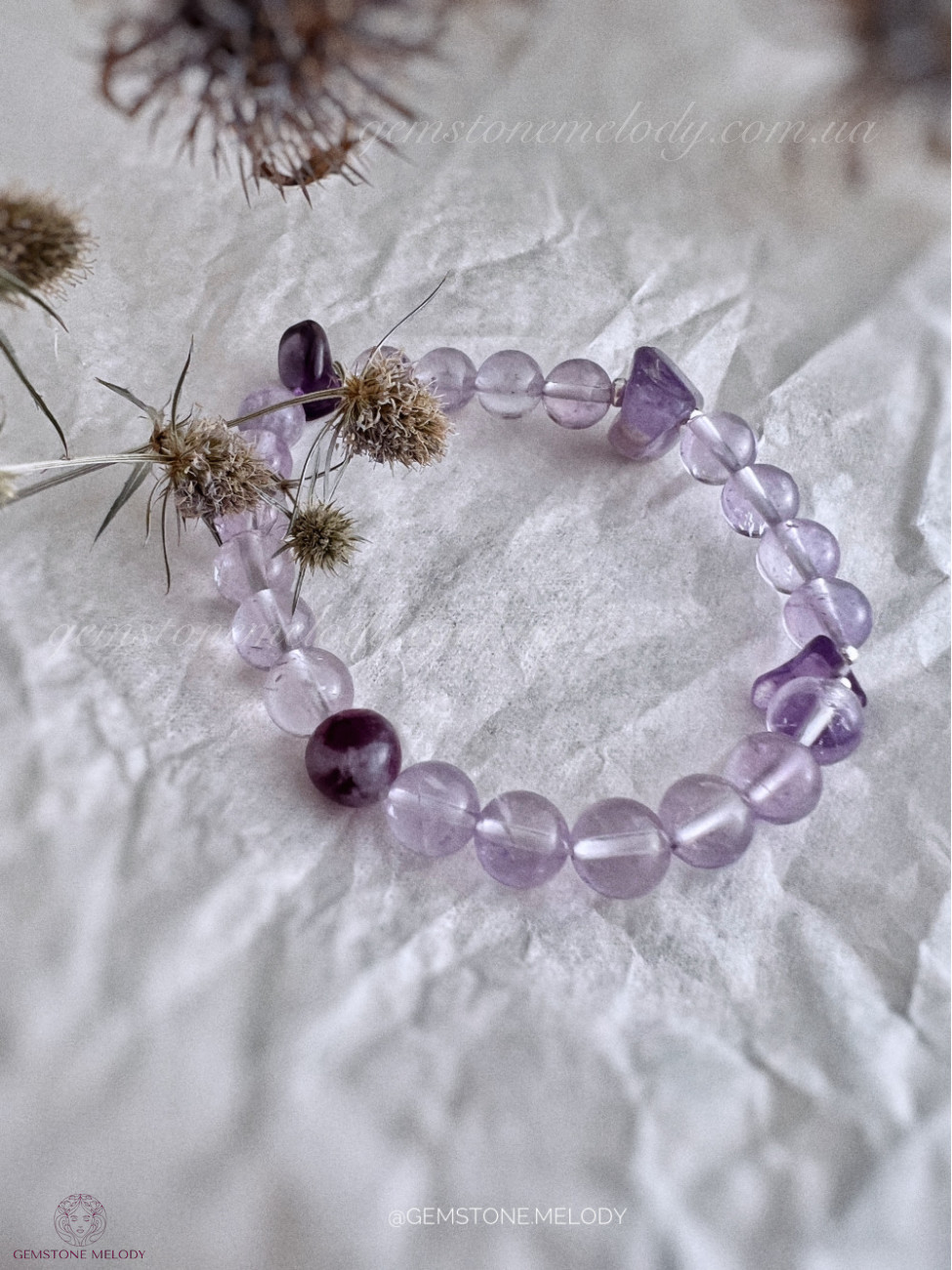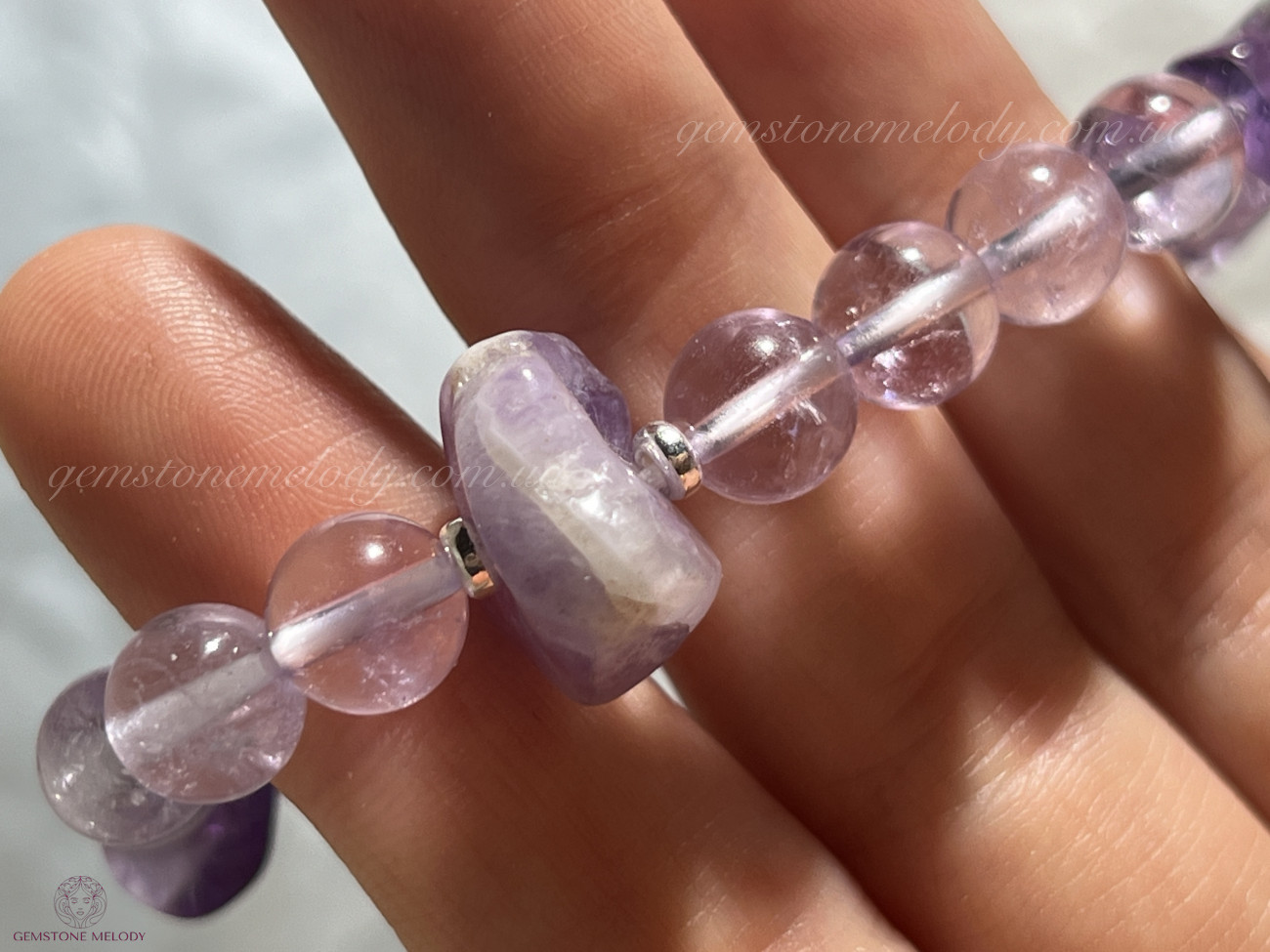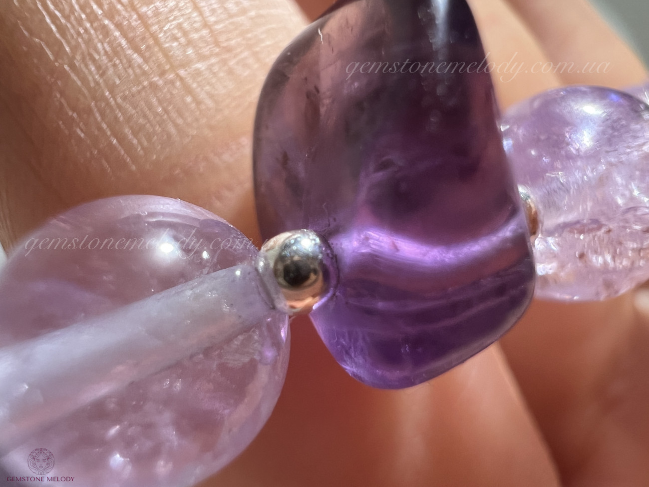 лавандовий аметист високої якості, необробленої форми аметисти, двох розмірів; фурнітура срібло;
