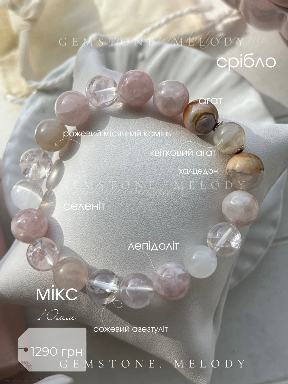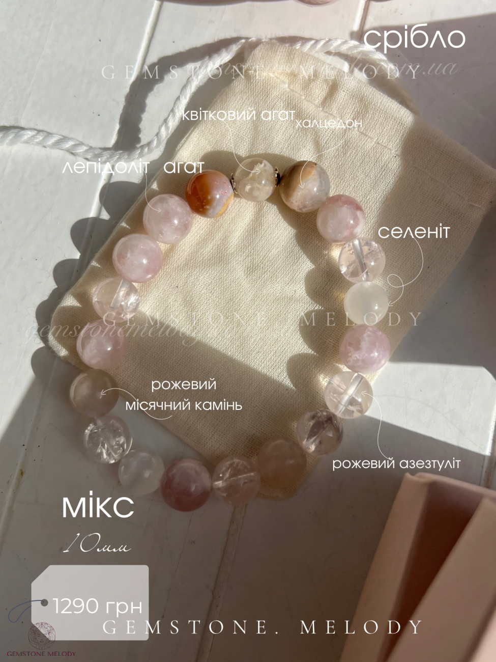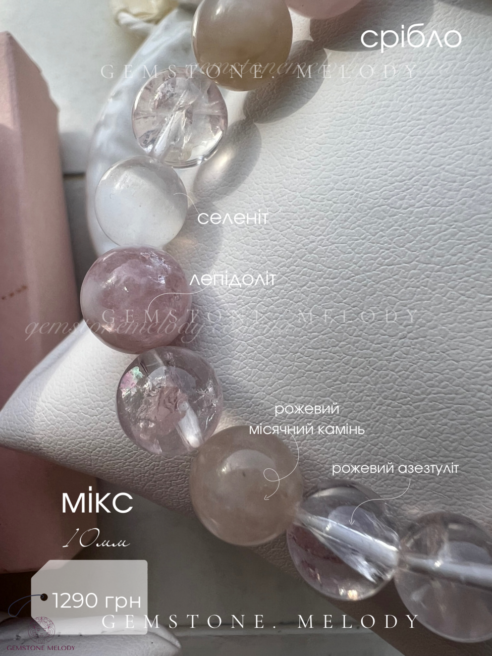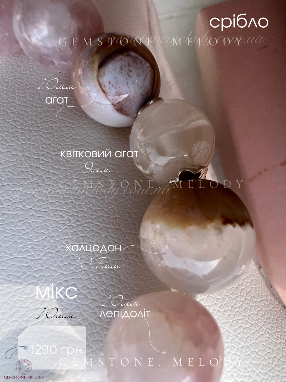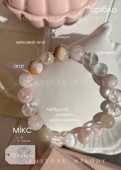 | Камені, які використовуються | Азезтуліт, лепідоліт, рожевий місячний камінь, агат, селеніт, халцедон, агат |