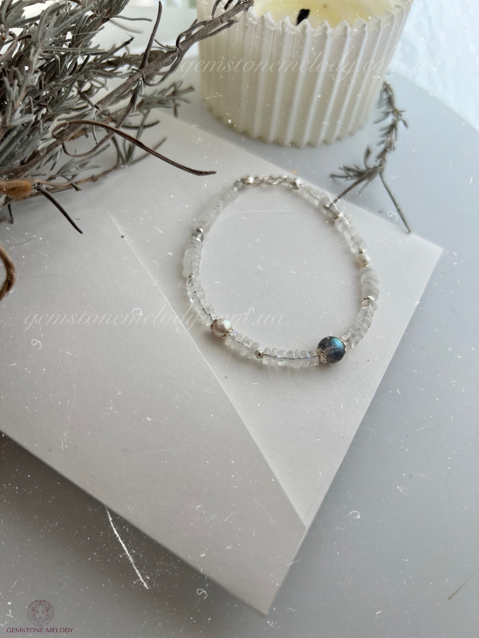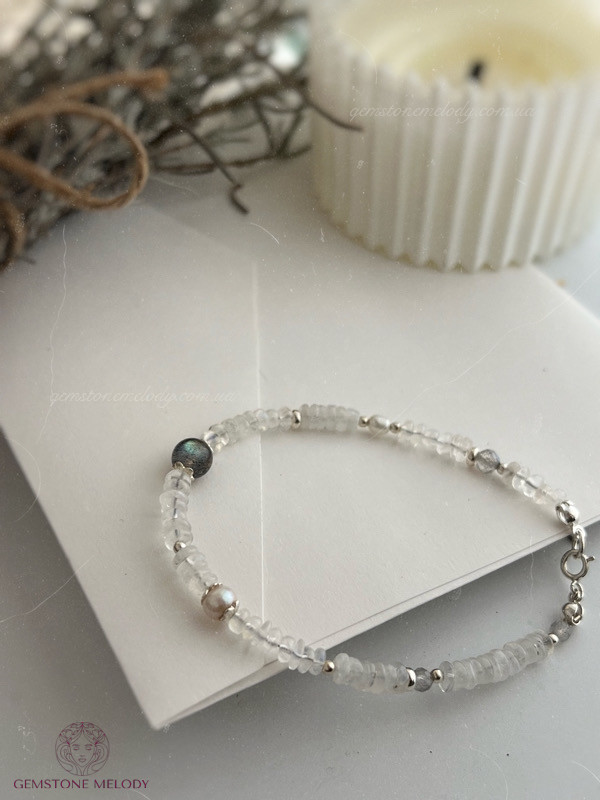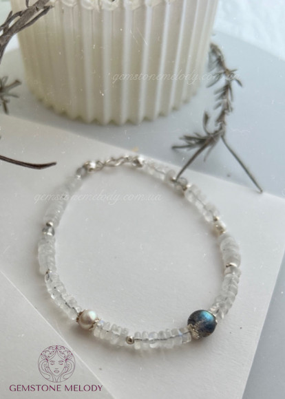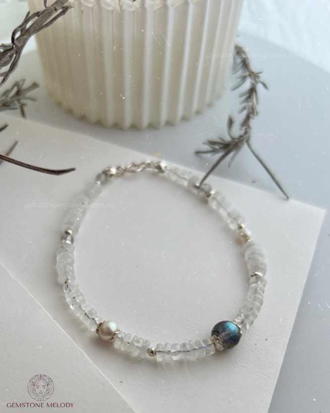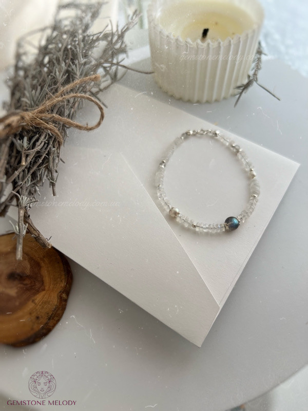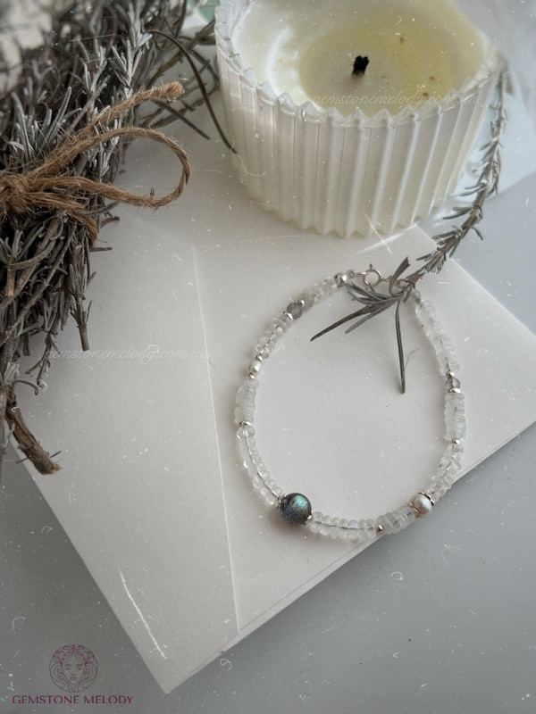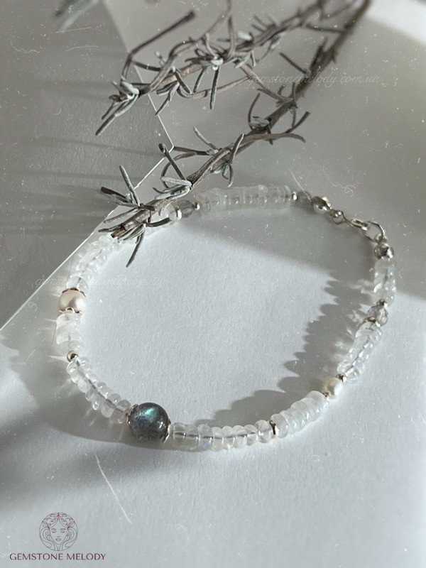 В браслеті:місячний камінь 2мм*4,5мм високої якості; лабрадор 6мм високої якості ;