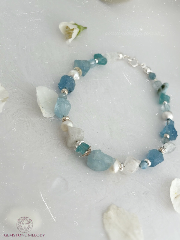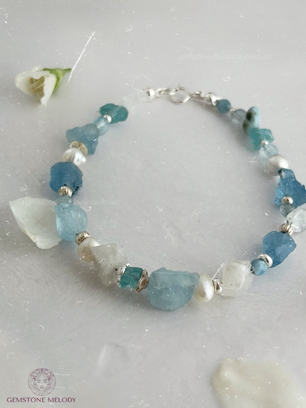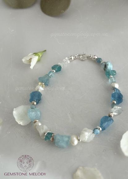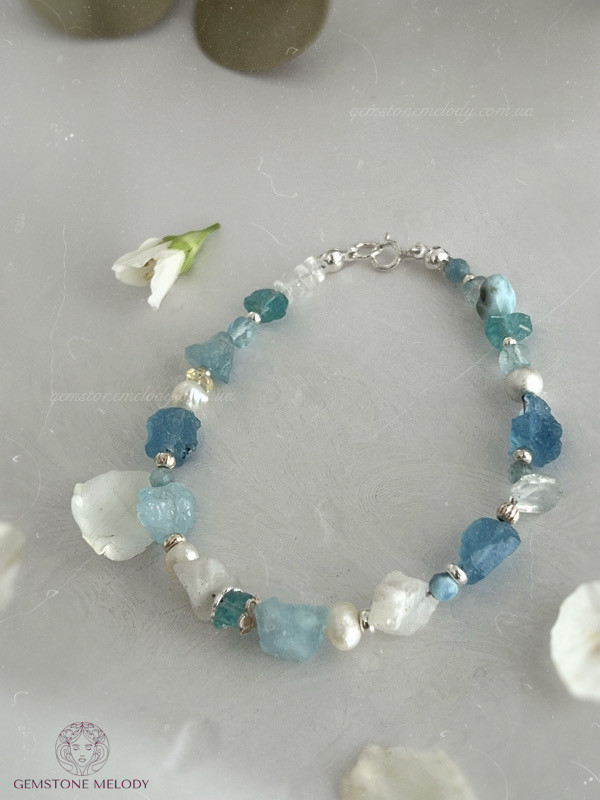 •аквмарин необробленої форми 8*11см, апатит необробленої форми, місячний камінь необробленої форми, місячний камінь високої якості 2*4мм, перлини; акваманин 3мм, топаз 3*3мм, топаз необробленої форми, ларимар 3*5мм;