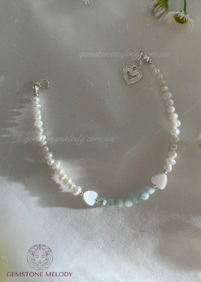 Браслет з пумпеліїтом, перлинами, перламутром