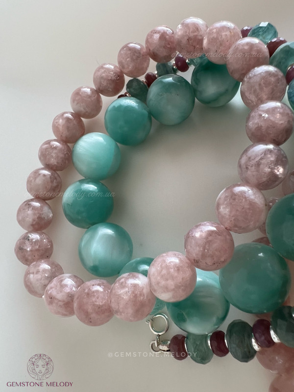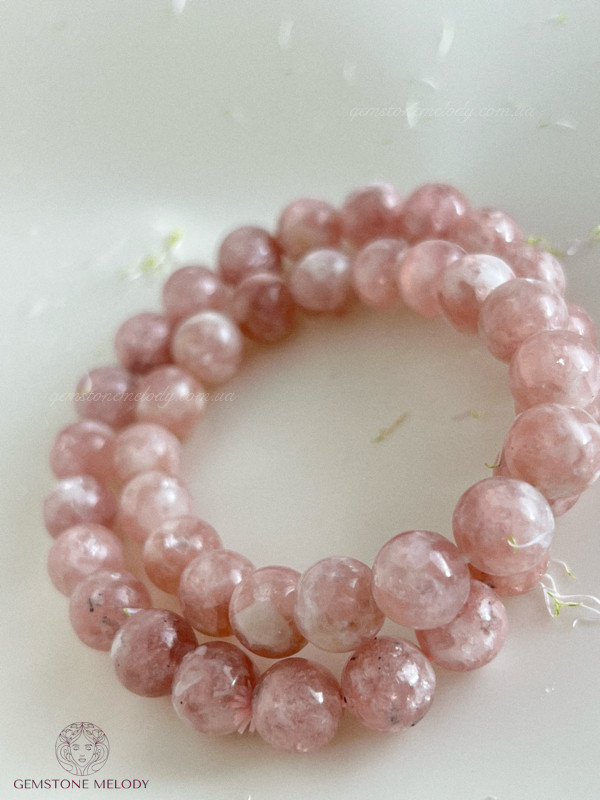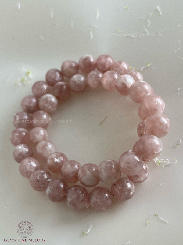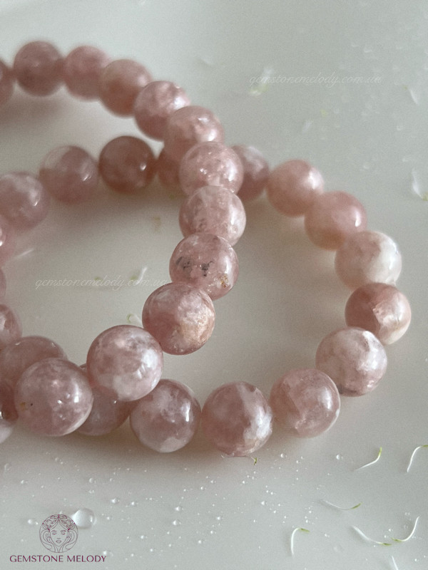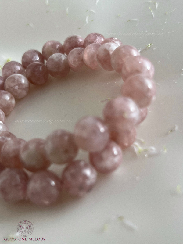 В браслеті: рожевий лепідоліт 9-9,5мм, це рідкісний колір для лепідоліта. Мати такий колір натурального каменю у своїй колекції-велике везіння. На сьогодні 17.07.2024 є змога привести його повторно. Очікувати 3-4тижні