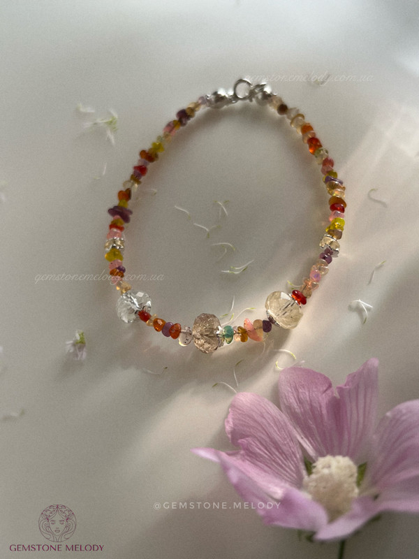 Браслет з різнокольоровим опалом, цитрином, аметрином