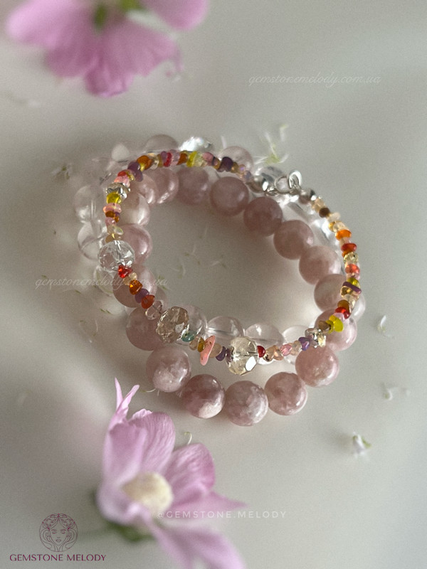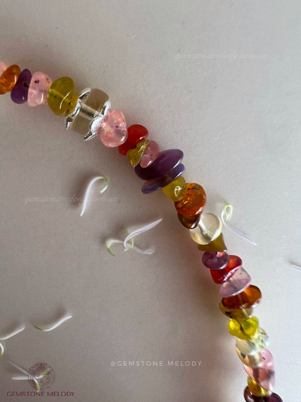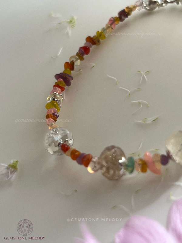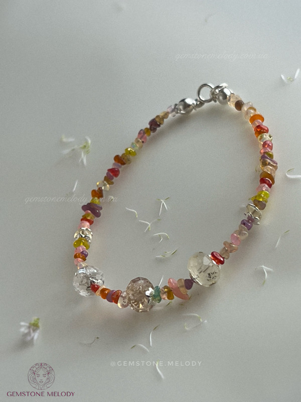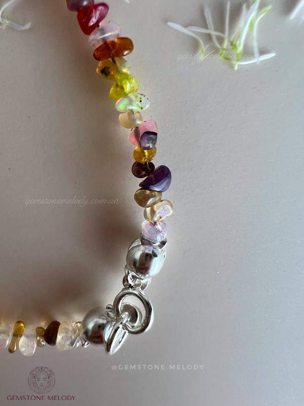 Квітуча композиція натуральний каменів у браслеті: благородні опали 2,5мм теплих кольорів, аметрин 5*7мм, цитрин 2*4мм; на замочку;