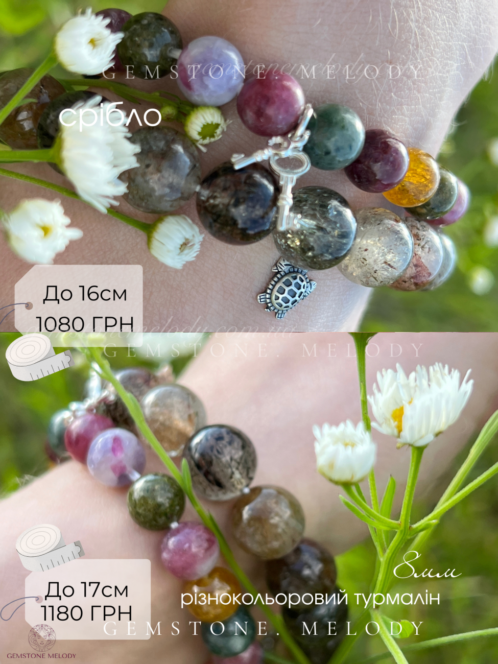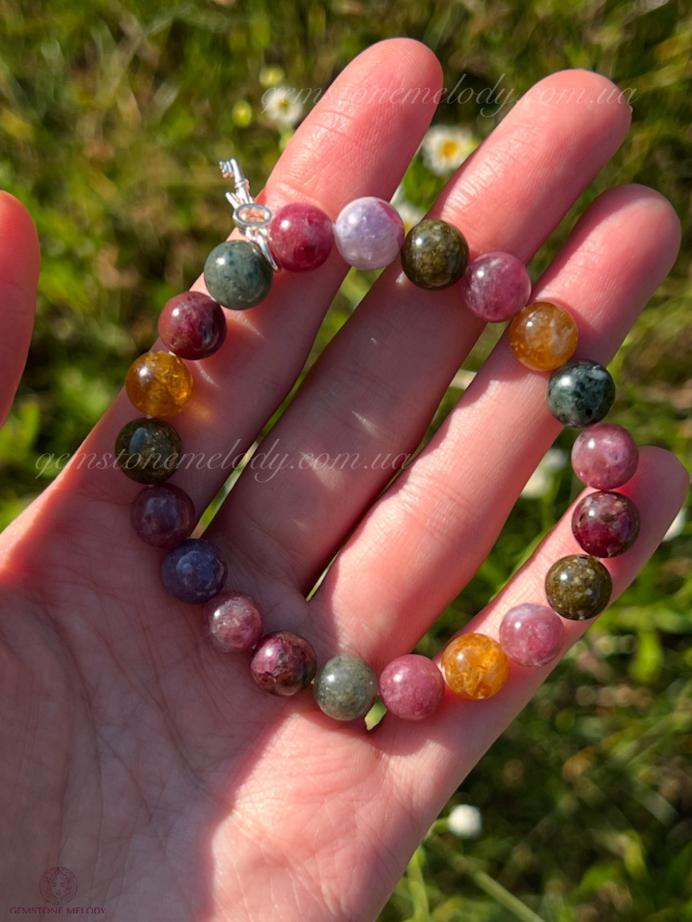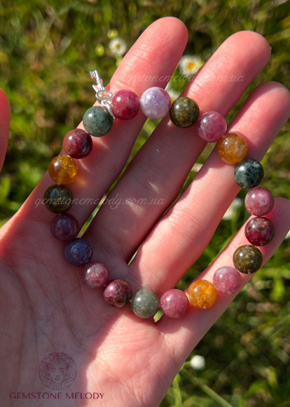Браслет з різнокольорового турмаліна з іншою на вибір підвіскою
