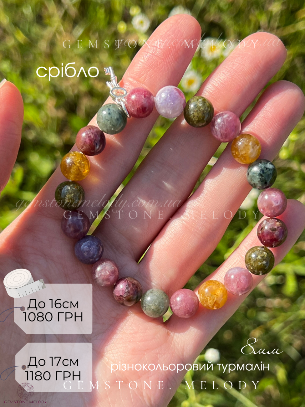 •різнокольоровий турмалін 8мм гарної якості, насичений, плюс є ексклюзивні відтінки як бузковий;