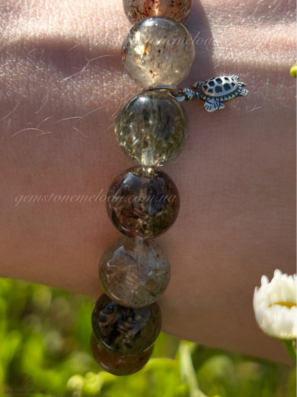 •рутиловий кварц 11мм, в ньому так гарно пробачаються вставки рутилу, такі прям волоски