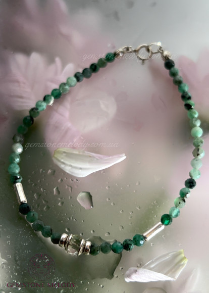 В браслеті: смарагд натуральний 3мм, срібло 925 проби; вставка берилу;