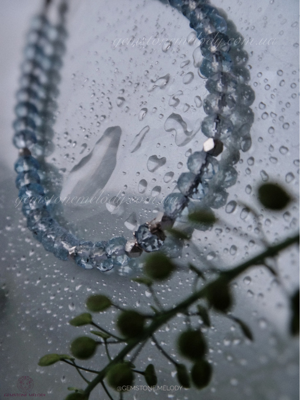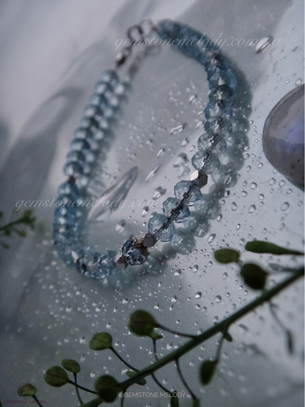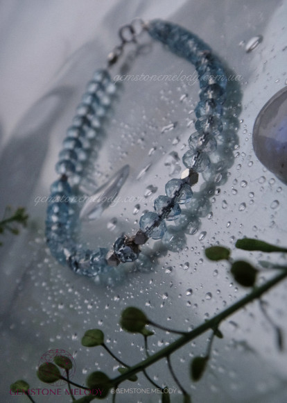 Ніжний блакитний колір натурального каменя -топаза. Браслет на замочку, топаз 3-4×4-6мм, срібло 925проби