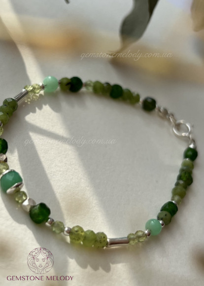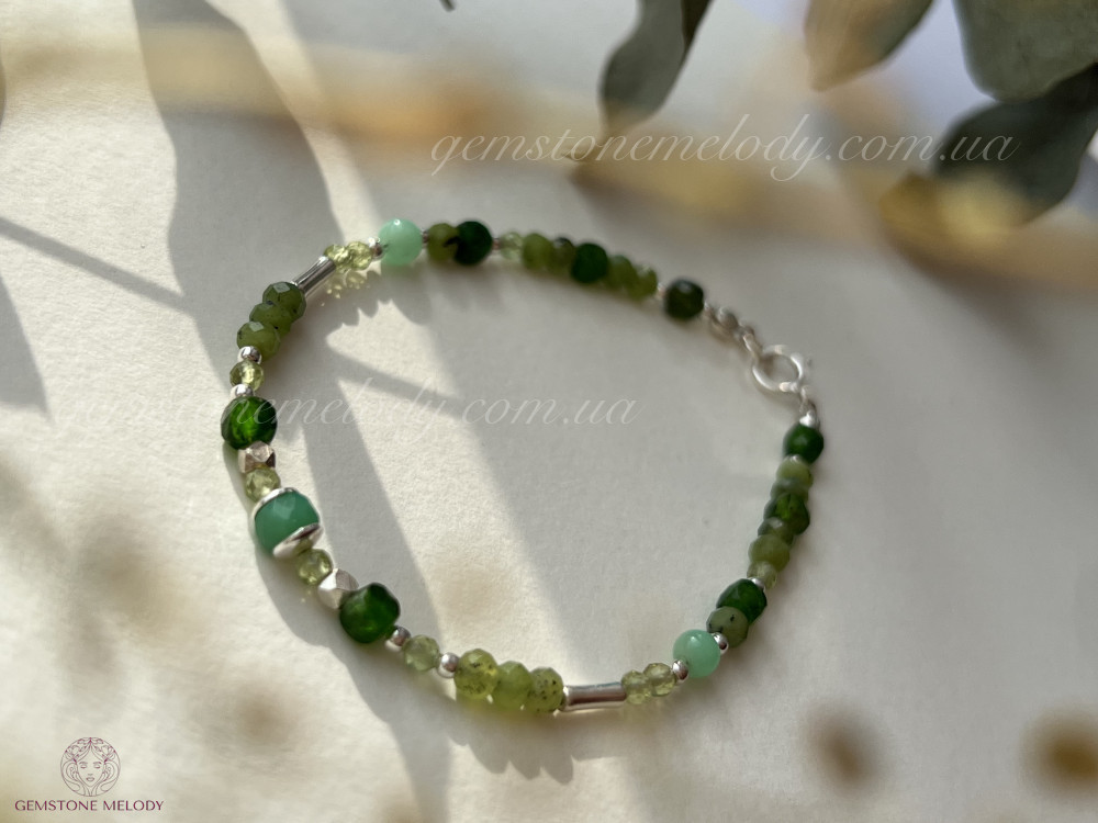 Браслет з зелених натуральних каменів та срібла