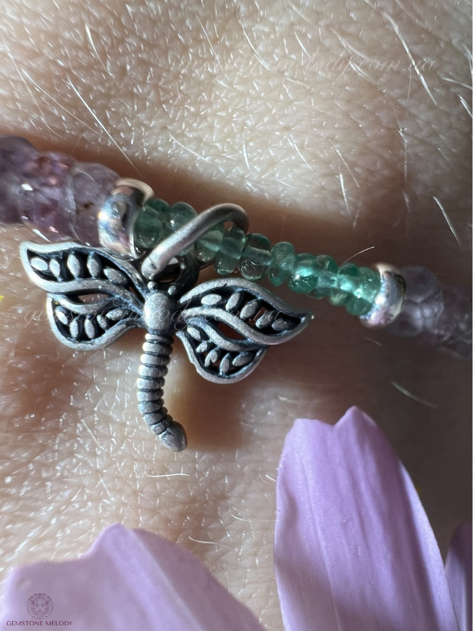 Браслет зі смарагду та лілової шпінелі