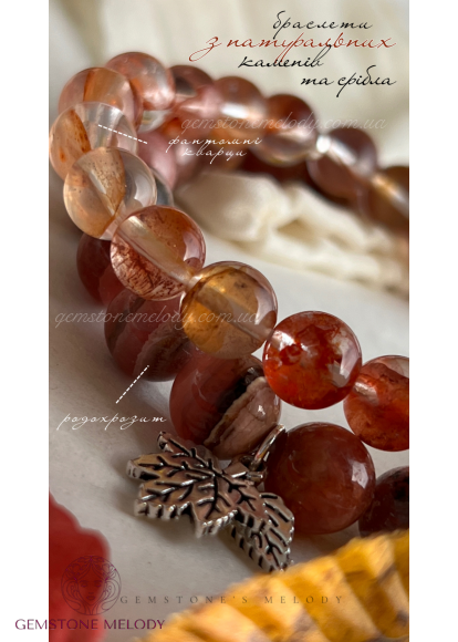 Браслети з фантомного кварцу і родохрозиту