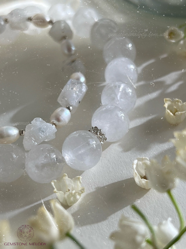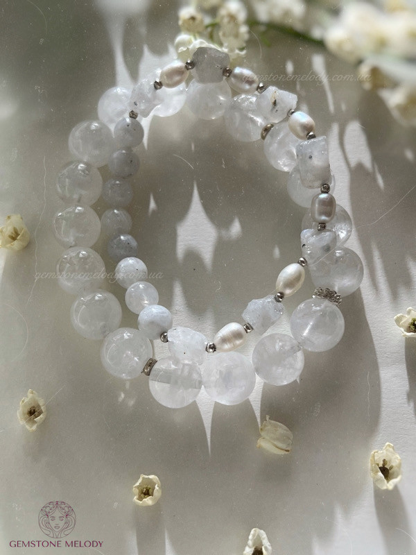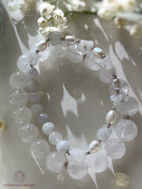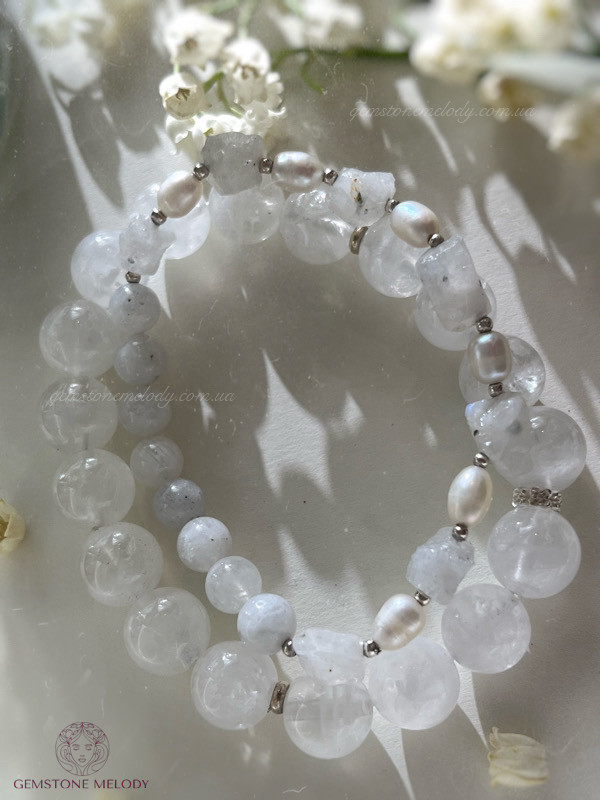 місячний камінь 7,5мм, місячний камінь необроблений, перли, срібло 925 проби;