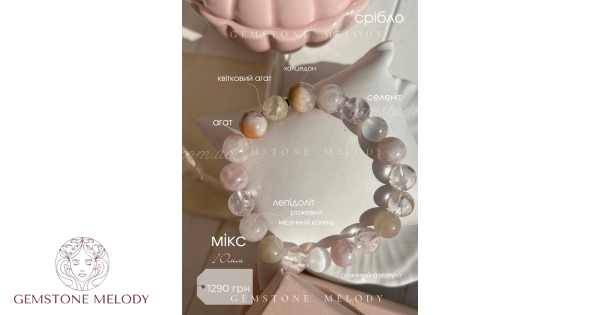 Браслет з міксу натуральних каменів ніжних рожевих кольорів