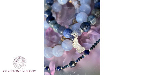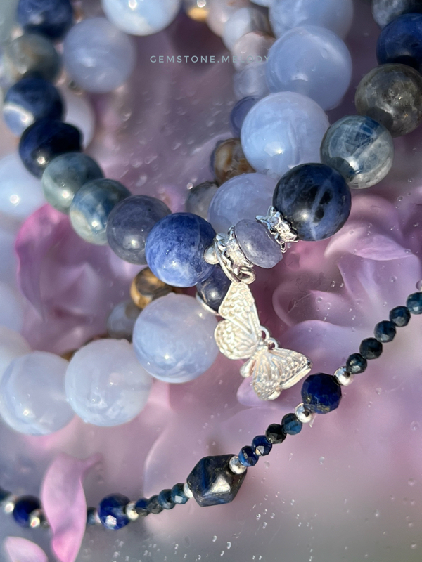Набір з чотирьох браслетів, сині натуральні камені