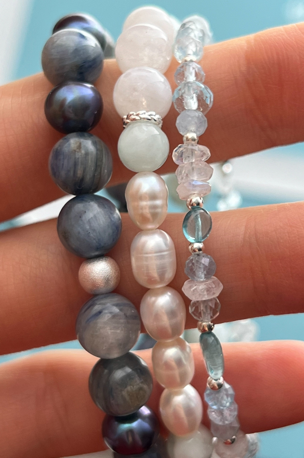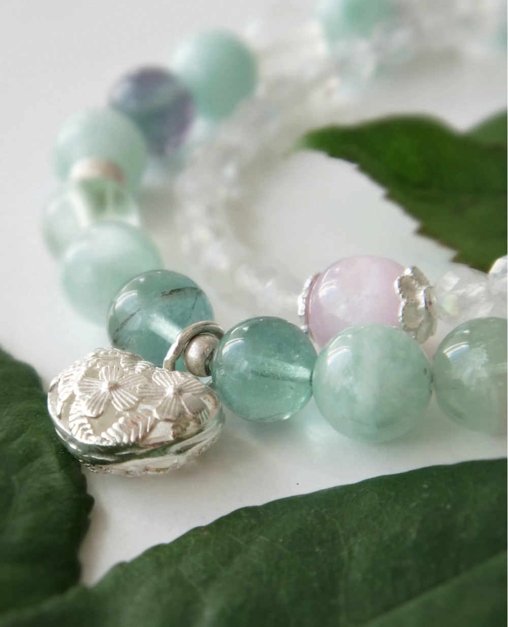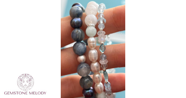Набір ніжних браслетів з натуральних каменів та срібла
